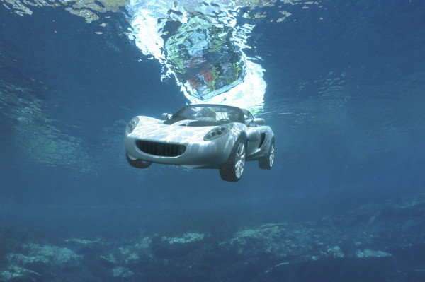 O Frank Rinspeed δεν είναι ένας συνηθισμένος καροσερίστας. Του αρέσει να κατασκευάζει εκκεντρικά πρωτότυπα μοντέλα που έχουν κάνει τον 52χρονο Ελβετό διάσημο σε όλο τον κόσμο. Το sQuba είναι εμπνευσμένο από την Lotus Esprit που συμμετείχε στην ταινία του James Bond με τίτλο “The spy who loved me” και εξοπλίζεται με έναν ηλεκτροκινητήρα της Tesla, με την κίνηση να μεταδίδεται στους πίσω τροχούς και το αυτοκίνητο να αναπτύσσει στην ξηρά ταχύτητα έως και 120 χλμ/ώρα. Όταν ο οδηγός του sQuba θελήσει να… το παίξει καπετάνιος, τότε από το πίσω μέρος του αυτοκινήτου αναπτύσσονται δύο προπέλες που τις κινούν άλλοι δύο ηλεκτροκινητήρες και «σκαφάτο» να κινηθεί μέχρι και 7χλμ/ώρα. Το sQuba μπορεί και… να καταδυθεί έως και 10 μέτρα σε βάθος αρκεί φυσικά ο οδηγός να φορά στολή κατάδυσης! Πόσο κάνει; Περίπου 1.000.000 ευρώ (δώρο οι μπουκάλες οξυγόνου).