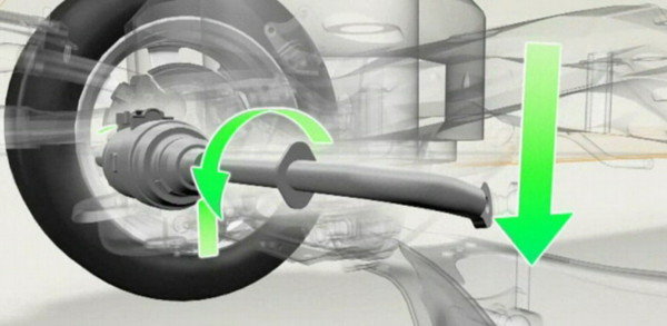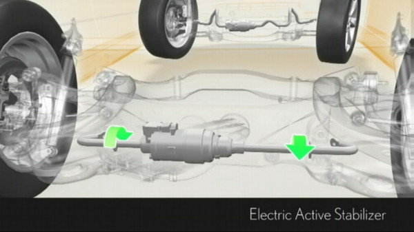 - Πως λειτουργεί; Το όλο σύστημα κατασκευάζεται από την Aisin και ελέγχεται ηλεκτρονικά από κεντρική μονάδα (ECU) ανάλογα με την δυναμική ευστάθεια του αυτοκινήτου. Όπως φαίνεται και στην σχεδιαστική απεικόνιση, στο μέσο κάθε αντιστρεπτικής ράβδου παρεμβάλλεται ένας ηλεκτρικός ενεργοποιητής (ένας μικρός ηλεκτροκινητήρας συνεχούς ρεύματος που κινεί ένα μικρομειωτήρα) που περιστρέφει αντίρροπα κάθε μέρος της ράβδου. Το άκρο της κάθε ράβδου είναι αρθρωμένο με ένα βραχίονα που περιορίζει την διαδρομή της ανάρτησης. Έτσι, σε διάρκεια αριστερής στροφής ο βραχίονας του εσωτερικού τροχού ωθείται προς τα πάνω ενώ του εξωτερικού προς τα κάτω αλφαδιάζοντας το αμάξωμα.