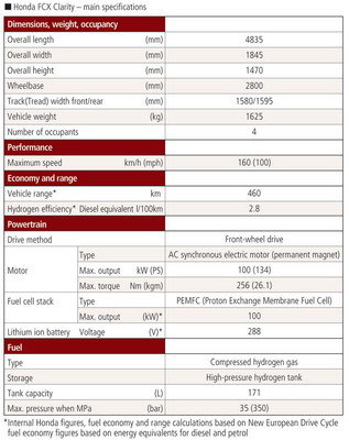 - Ως τώρα υπάρχουν και έχουν διατεθεί σε επιλεγμένους, από τη Honda, “προσωρινούς πελάτες” 35 FCX Clarity. H διάθεση έχει γίνει με τη μέθοδο “leasing”, μακροχρόνια χρηματοδοτική μίσθωση, η οποία εν προκειμένω θα διαρκέσει τρία χρόνια. Μετά από αυτό το διάστημα τα αυτοκίνητα θα επιστραφούν στην Honda για αξιολόγηση.