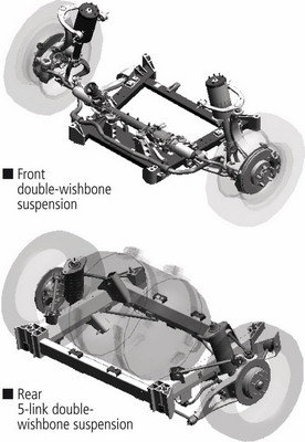 - Ανάρτηση με διπλά ψαλίδια για ομαλή και άνετη οδική συμπεριφορά, ομοιόμορφη, με μειωμένες κλίσεις αμαξώματος