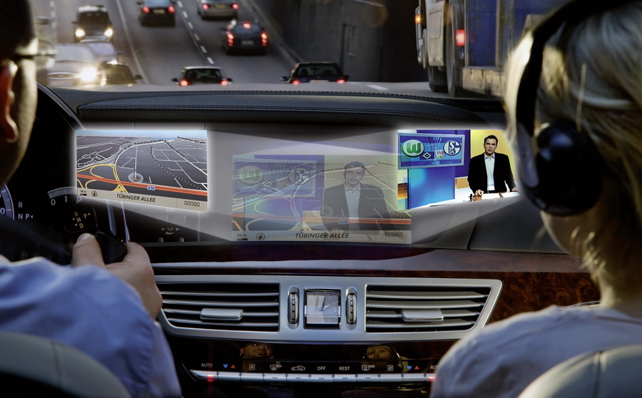 - Πως λειτουργεί; H οθόνη υγρών κρυστάλλων βασίζεται στην τεχνολογία TFT-LCD (Thin Film Transistor Liquid Crystal Display). Πάνω από τους κρυστάλλους υπάρχει μια στρώση από ένα φιλμ που έχει την ιδιότητα να κρύβει ολόκληρες στήλες με pixel ανάλογα με την γωνία που το παρατηρεί κανείς. Έτσι ο οδηγός σε μία S-Class βλέπει την πρώτη αριστερή στήλη και όχι την αμέσως επόμενη που είναι αόρατη σε αυτόν αλλά ορατή στον συνοδηγό. Η ανάλυση της οθόνης είναι 800×480 αλλά επειδή ανά μία στήλη είναι αόρατη το κάθε πλάνο είναι ανάλυσης 400×480.