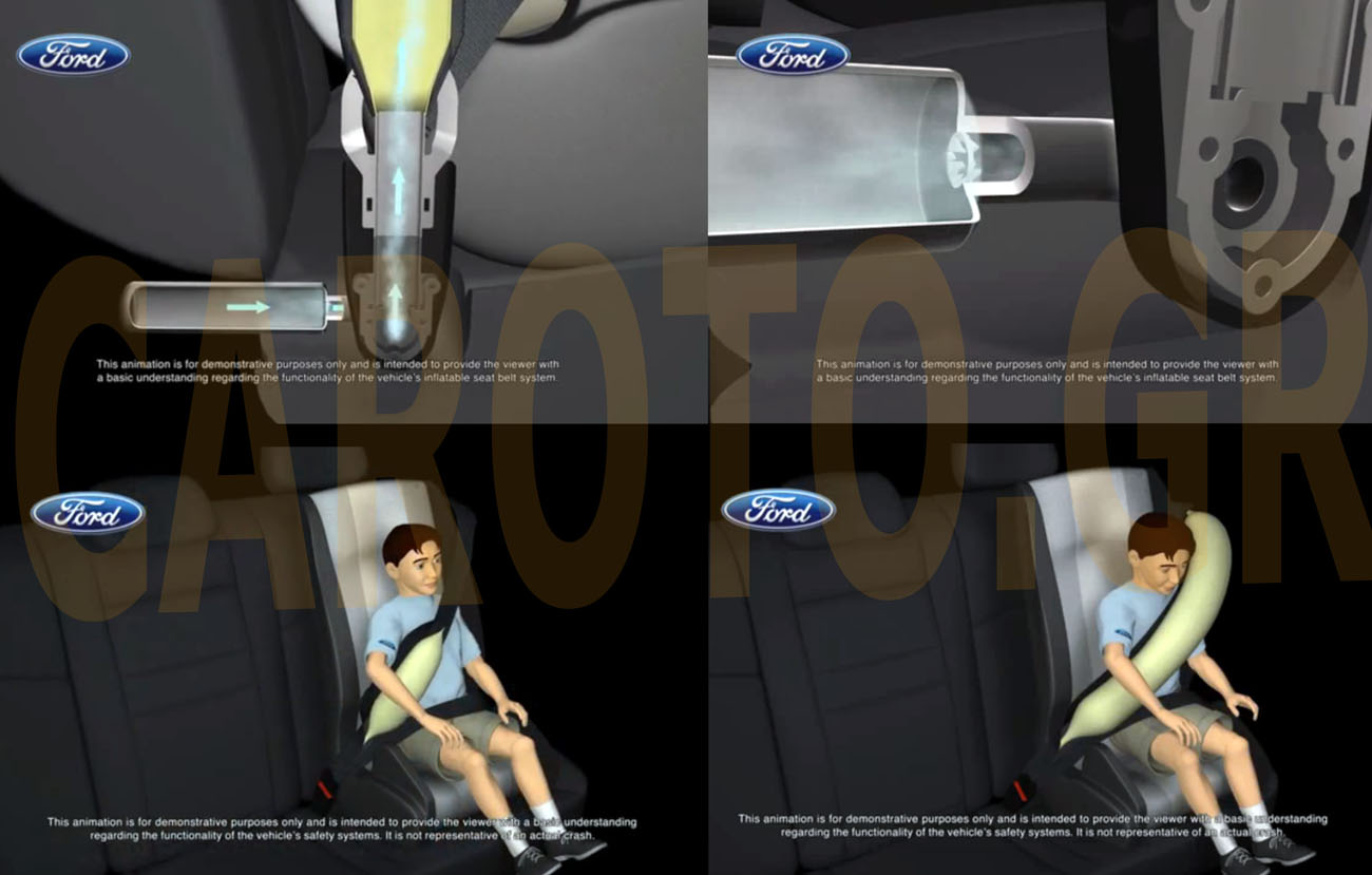 - “Ο πρώτος αερόσακος ζώνης ασφαλείας ανήκει στην εταιρία μας” λέει η Ford. Για την ακρίβεια αυτός είναι ο πρώτος αερόσακος του συγκεκριμένου τύπου που θα μπει στην παραγωγή μιας και πολλές εταιρίες (μία από αυτές είναι και η Renault) εξελίσσουν παρόμοια τεχνολογία. Απλά οι “φορντάκηδες” από το Detroit προλαβαίνουν και τη “ρίχνουν” πρώτοι στην αγορά.