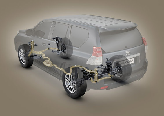 Το σύστημα Kinetic Dynamic Suspension (KDSS) επενεργεί στις δύο αντιστρεπτικές ράβδους με στόχο την βέλτιστη οδική συμπεριφορά του νέου Land Cruiser στις ασφάλτινες και χωμάτινες διαδρομές περιορίζοντας τις κλίσεις, τις ταλαντώσεις και τους κραδασμούς του αμαξώματος.