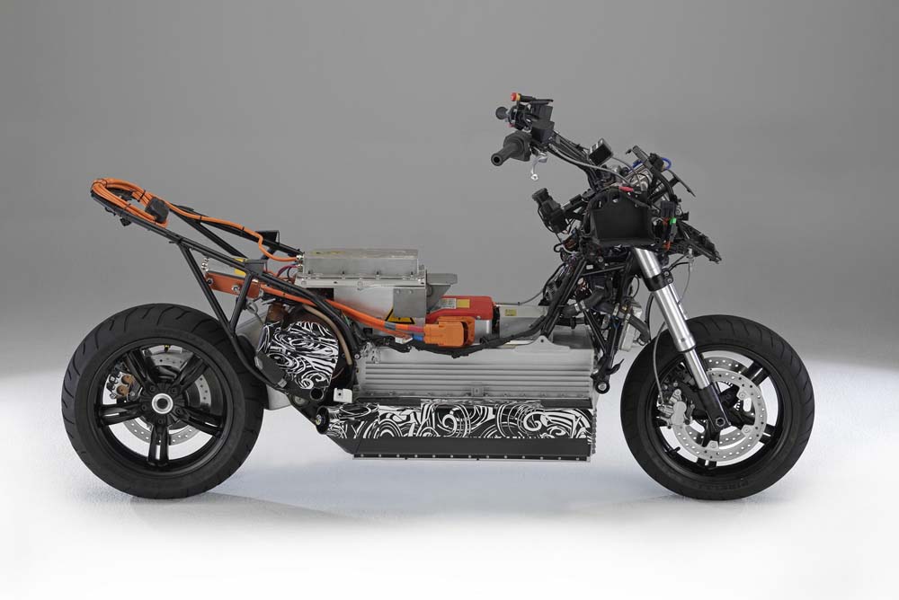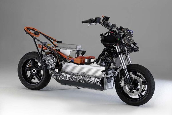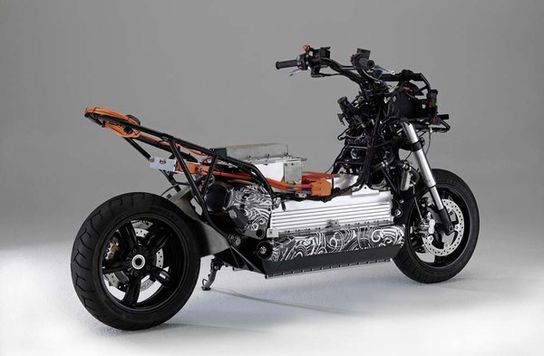 • Το στοιχείο κίνησης δεν βρίσκεται ενσωματωμένο στον τροχό (hub wheel) όπως σε άλλα πρωτότυπα ηλεκτροκίνητα δίκυκλα αλλά ανεξάρτητα και πίσω από τις μπαταρίες. Την μετάδοση από τον ηλεκτροκινητήρα αναλαμβάνει οδοντωτός ιμάντας και από εκεί η κίνηση περνά σε μία άλλη τροχαλία συνδεδεμένη με το τελικό πινιόν. Από εκεί μια καδένα μεταφέρει την κίνηση στον τροχό (ένα σχέδιο θα βοηθούσε αλλά δυστυχώς δεν υπάρχει). Εκτός από τις μπαταρίες που είναι αερόψυκτες, το υπόλοιπο ηλεκτρικό σύστημα είναι «υδρόψυκτο» και λειτουργεί ακόμη και κατά την διαδικασία επαναφόρτισης όπου μία ηλεκτρική αντλία αναλαμβάνει την κυκλοφορία του ψυκτικού υγρού.