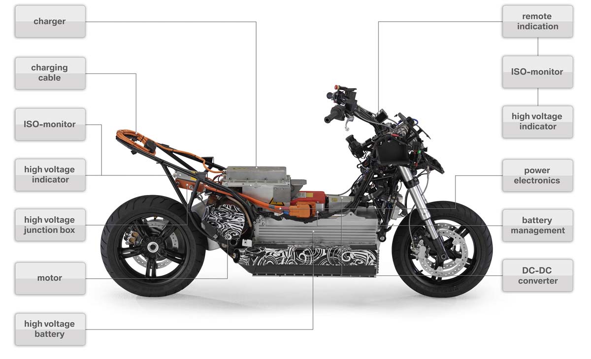 • Οι μπαταρίες προσφέρουν αυτονομία 100 km, επαναφορτίζονται με σπιτικό ρεύμα και η διαδικασία διαρκεί περίπου 3 h ακόμη και όταν έχουν αδειάσει εντελώς. Σε αντίθεση με τα συμβατικά σκούτερ το πρωτότυπο της BMW διαθέτει ένα πλαίσιο που είναι σχεδιασμένο γύρω από το περίβλημα των μπαταριών που είναι στο ίδιο μέρος με την ηλεκτρονική μονάδα διαχείρισης.