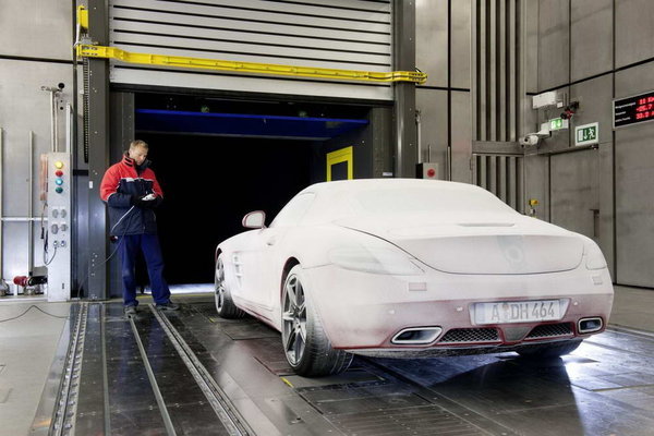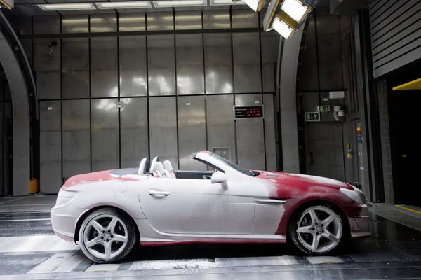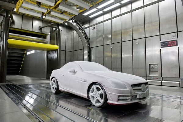 • new-mercedes-climatic-wind-tunnel-6Στο Sindelfingen της Γερμανίας λειτουργούν δύο κλιματολογικά τούνελ προσομοίωσης που βοηθούν τους ειδικούς Mercedes-Benz στην εξέλιξη νέων μοντέλων. Στις μονάδες αυτές δημιουργούνται τεχνητά περιβάλλοντα προσομοιώνοντας πολικές ή τροπικές συνθήκες, όπως είναι καταιγίδες, χιονοθύελλες, ανεμοστρόβιλοι, θερμά ρεύματα αέρα κ.α. Στα τούνελ αυτά (διαβάστε εδώ για το ATC, το αεροδυναμικό κέντρο της BMW) μελετάται η συμπεριφορά μοντέλων μεγέθους από το μικρό smart μέχρι το μεγαλύτερο επαγγελματικό Sprinter. Ανάμεσα στις πολλές λεπτομέρειες ξεχωρίζει το προσωπικό των 20 ειδικών που απασχολούνται σε δύο βάρδιες ενώ στο συγκεκριμένο κέντρο δοκιμάζονται ηλεκτροκίνητα και fuel-cell μοντέλα ώστε να βελτιωθεί η απόδοσή και η λειτουργία τους στις πλέον αφιλόξενες συνθήκες.