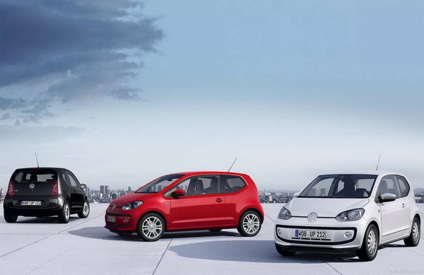 • Σε τρεις εκδόσεις θα κυκλοφορήσει το νέο minicar της VW, στην φτηνή έκδοση take up!, στην ενδιάμεση move up!  και στην κορυφαία high up! που θα προσφέρεται σε μαύρη και άσπρη απόχρωση. Οι διαστάσεις του 3-θυρου up! είναι 3,54 x 1,64 x 1, 48 m και μαζί με το Fiat 500 (3,55 m σε μήκος) είναι ένα από τα μικρότερα τετραθέσια αυτοκίνητα που υπάρχουν. Με μεταξόνιο 2,24 m το up! έχει σχεδιασθεί σαν ένα μικρό όχημα ενός όγκου στο οποίο θα βασισθούν αντίστοιχα μοντέλα των Seat (θυμηθείτε τα Arosa και Lupo) και Skoda.