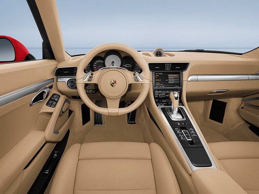 - Για να συνοδεύσουν το σύγχρονο σχεδιασμό του εξωτερικού, οι σχεδιαστές της Porsche δημιούργησαν ένα εσωτερικό όπου η αρχιτεκτονική του παραπέμπει στην Porsche Carrera GT. O οδηγός ενσωματώνεται πλέον ακόμα περισσότερο στο κόκπιτ, χάρη στην κεντρική κονσόλα που ανασηκώνεται έως το μπροστινό μέρος, ενώ ο ψηλά τοποθετημένος μοχλός ή επιλογέας ταχυτήτων βρίσκεται σκόπιμα κοντά στο τιμόνι, όπως στα αγωνιστικά αυτοκίνητα. Όπως στο εξωτερικό, έτσι και στο εσωτερικό υπάρχουν τα κλασικά στοιχεία της Porsche: ο πίνακας οργάνων με τα πέντε στρογγυλά όργανα – ένα από τα οποία περιλαμβάνει υψηλής ανάλυσης οθόνη πολλαπλών ενδείξεων, το κεντρικά τοποθετημένο στροφόμετρο και ο διακόπτης του κινητήρα αριστερά του τιμονιού.