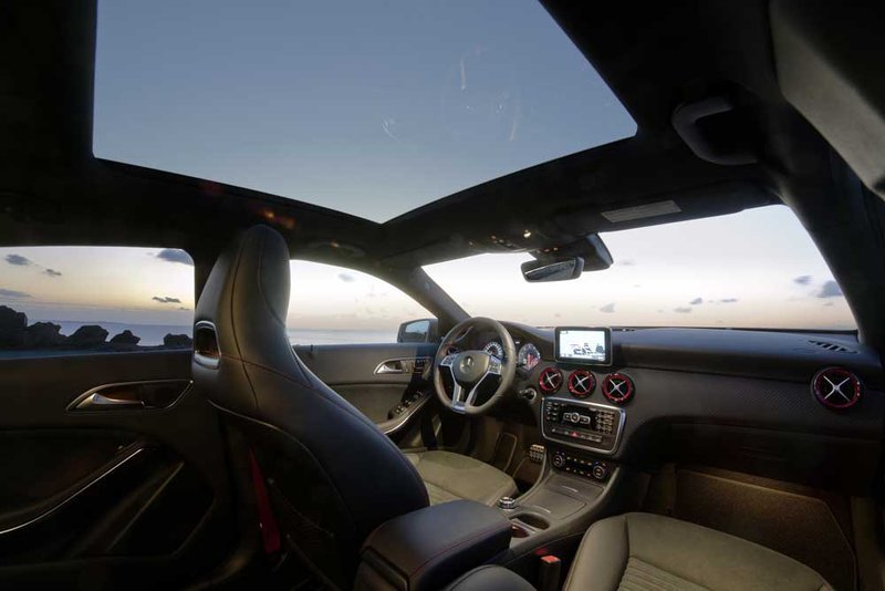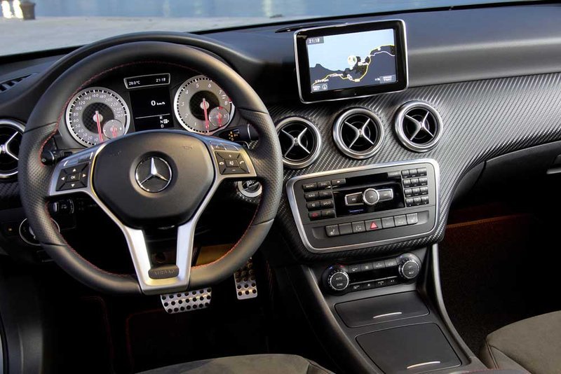 Η θέση του οδηγού είναι πολύ καλή αντικρίζοντας την γνώριμη αισθητικά άποψη του ταμπλό που δεν ξεφεύγει σε μεγάλο βαθμό από τις μεγαλύτερες Mercedes. Ο πίνακας οργάνων είναι ευδιάκριτος και ευκρινής, η σταθερή κεντρική οθόνη που παραπέμπει σε ταμπλέτα δίνει μία διαφορετική νότα στο σκουρόχρωμο διάκοσμο μαζί με τους όμορφους αεραγωγούς, οι διακόπτες είναι εύτακτα τοποθετημένοι στην κονσόλα αλλά τα χειριστήρια για τον κλιματισμό είναι κάπως χαμηλά τοποθετημένα.