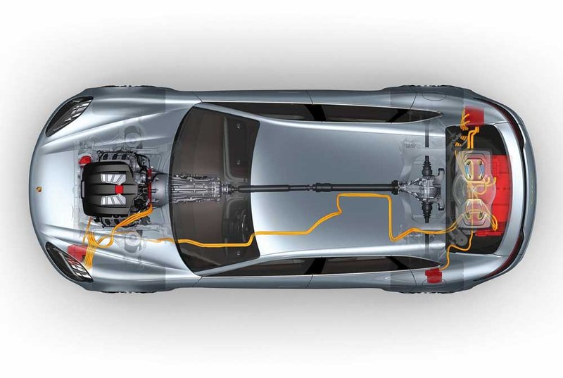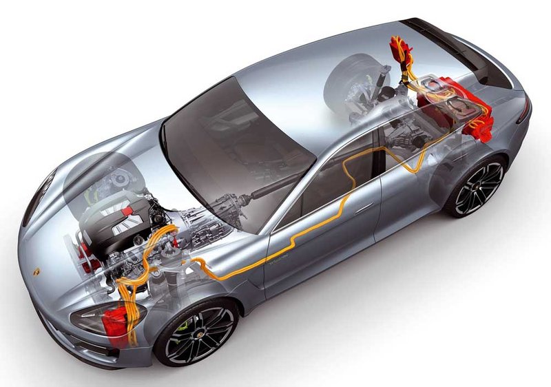 • Το ενδιαφέρον όμως συγκεντρώνει το παράλληλο υβριδικό σύστημα κίνησης το οποίο βασίζεται σε αυτό της Panamera Hybrid αλλά θα είναι αποδοτικότερο (με νέο ισχυρότερο ηλεκτροκινητήρα 70 kW και τρίλιτρο τούρμπο V6 βενζινοκινητήρα 245 kW) , θα χρησιμοποιεί υγρόψυκετες μπαταρίες λιθίου-ιόντων (με ενεργειακό φορτίο 9,4 kW/h) και φυσικά θα μπαίνει και στην πρίζα (plug-in με φόρτιση σε 2,5 h) προσφέροντας ηλεκτροκίνητη αυτονομία για περίπου 30 km αρκεί η ταχύτητα να μην υπερβαίνει τα 130 km/h. H συνδυασμένη ισχύς φτάνει τους 416 PS με τα 0-100 km/h να πετυχαίνονται σε 5,9 sec και την μέση τυποποιημένη κατανάλωση να μην ξεπερνά τα 3,5 lt/100 km με την εκπομπή CO2 να περιορίζεται μόλις στα 82 g/km.