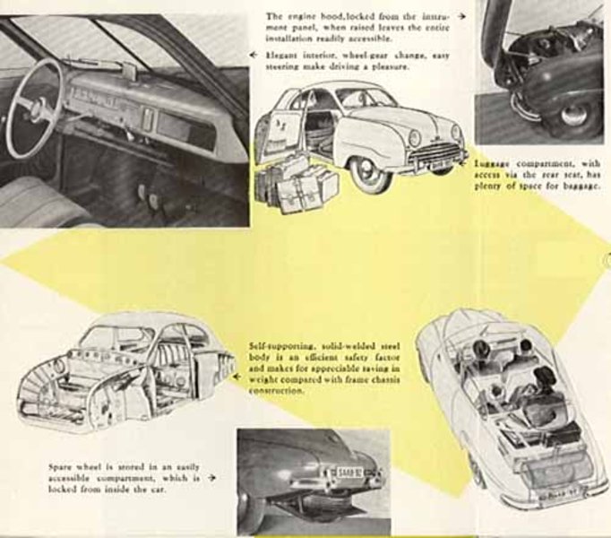 Οι μηχανικοί της Saab δημιούργησαν επίσης έναν κλωβό για τους επιβάτες, ώστε να προστατευθούν σε περίπτωση ατυχήματος, ένα από τα πρώτα αυτοκίνητα που σχεδιάστηκαν με σκοπό την ασφάλεια. Το κόστος παραγωγής ήταν σημαντικό για την Saab εκείνη την εποχή και μόνο το 17% του κόστους ήταν από εισαγόμενα υλικά. Η αρχή του Henry Ford “οποιοδήποτε χρώμα θέλετε, αρκεί να είναι πράσινο” ταίριαζε στην περίπτωση της Saab!