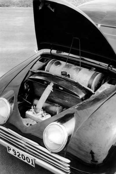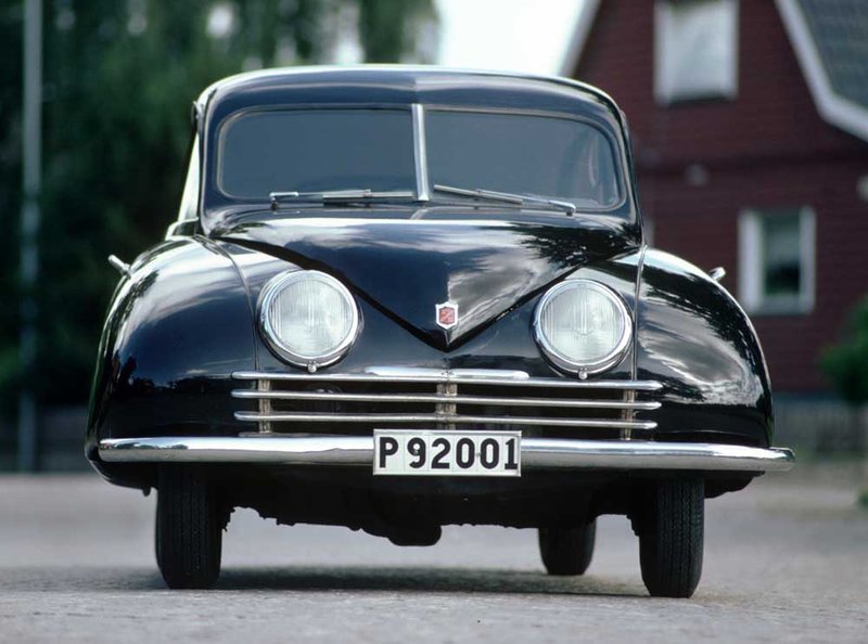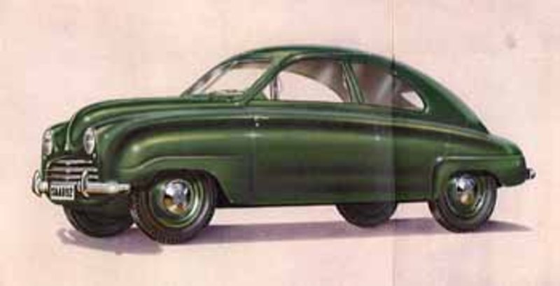 5 χρόνια αργότερα, τον Δεκέμβριο του 1949, το Saab 92 βγαίνει στην παραγωγή. Ο λόγος της καθυστέρησης ήταν η έλλειψη αποθεμάτων ατσαλιού σ’ όλο τον κόσμο. Η παραγωγή ήταν 700 αυτοκίνητα. Ο κινητήρας ήταν 750cc, 2 κυλίνδρων, δίχρονος, στο διαμήκη άξονα, εμπρός από τον εμπρός τροχό.