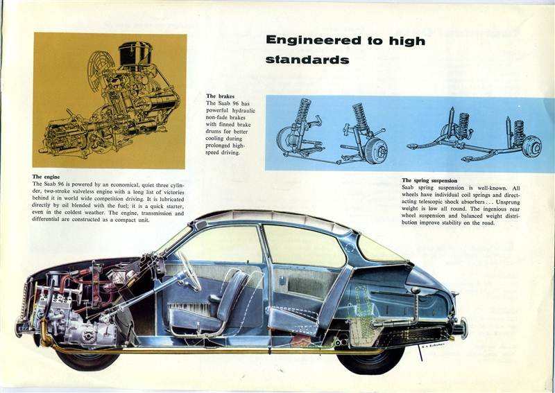Το νέο Saab 96 παρουσιάστηκε σε συνέντευξη τύπου στην Στοκχόλμη, τον Φεβρουάριο του 1960. Το μοντέλο παρήχθη μέχρι το 1980 και είχε κινητήρα V4. Το Saab 96 ήταν για τους Σουηδούς ότι και το VW beetle για τους Γερμανούς. Η ανάγκη ενός μεγαλύτερου μοντέλου, οδήγησε στη δημιουργία του 99 το 1967.