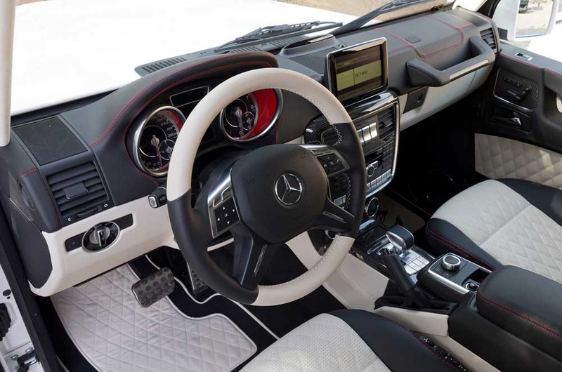 Σε αντίθεση με την στρατιωτική έκδοση που χρησιμοποιεί τρίλιτρο V6 ντίζελ, το θηρίο που βλέπετε εξοπλίζεται με διπλοτούρμπινο V8 χωρητικότητας 5,5 lt που αποδίδει 536 PS και 760 Nm ροπής μετά την περιποίηση της AMG. Το απόβαρο φτάνει τα 3.775 kg και την μετάδοση αναλαμβάνει το αυτόματο κιβώτιο 7G-tronic. Από εκεί και πέρα το transfer case μεταβάλει την σχέση μετάδοσης από την ασφάλτινη 0,87:1 έως την χωμάτινη 2,16:1 ενώ η κατανομή ανάμεσα στους 3 άξονες είναι 30/40/30.