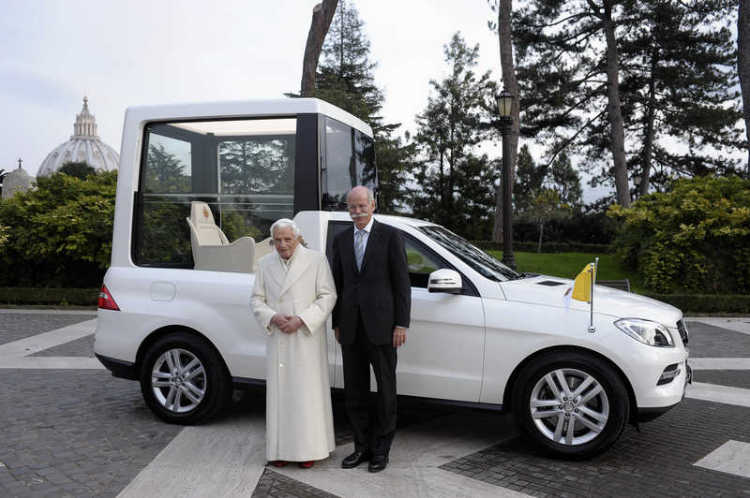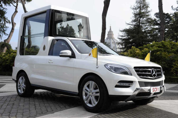 Βολικός και δίχως ιδιαίτερες απαιτήσεις εμφανίζεται ο νέος πάπας Φραγκίσκος ο 1ος μιας και θα χρησιμοποιεί το μεταφορικό μέσο του Βενέδικτου. Κύριο χαρακτηριστικό της λευκής τροποποιημένης M-Class είναι η εξατομικευμένη γυάλινη κατασκευή στο πίσω μέρος. Υπενθυμίζεται πως το “popemobile” είχε παραδοθεί στον προηγούμενο Πάπα από τον πρόεδρο της γερμανικής εταιρείας Dieter Zetsche.