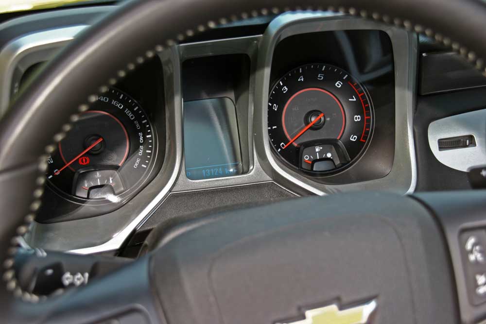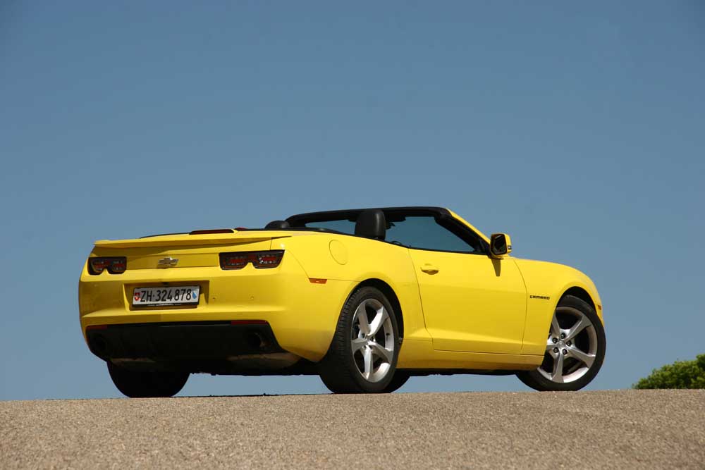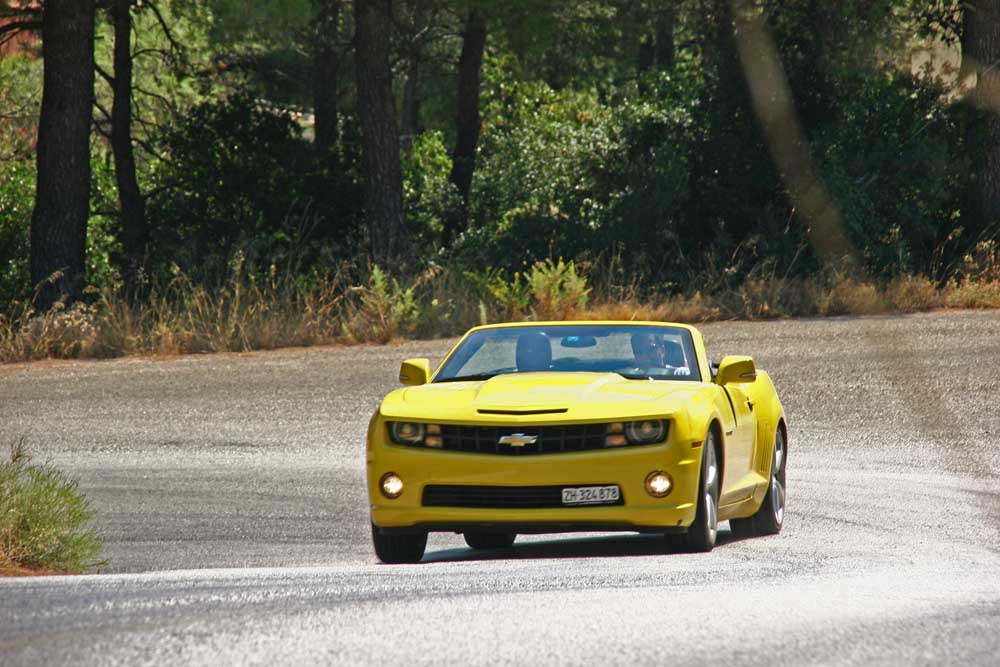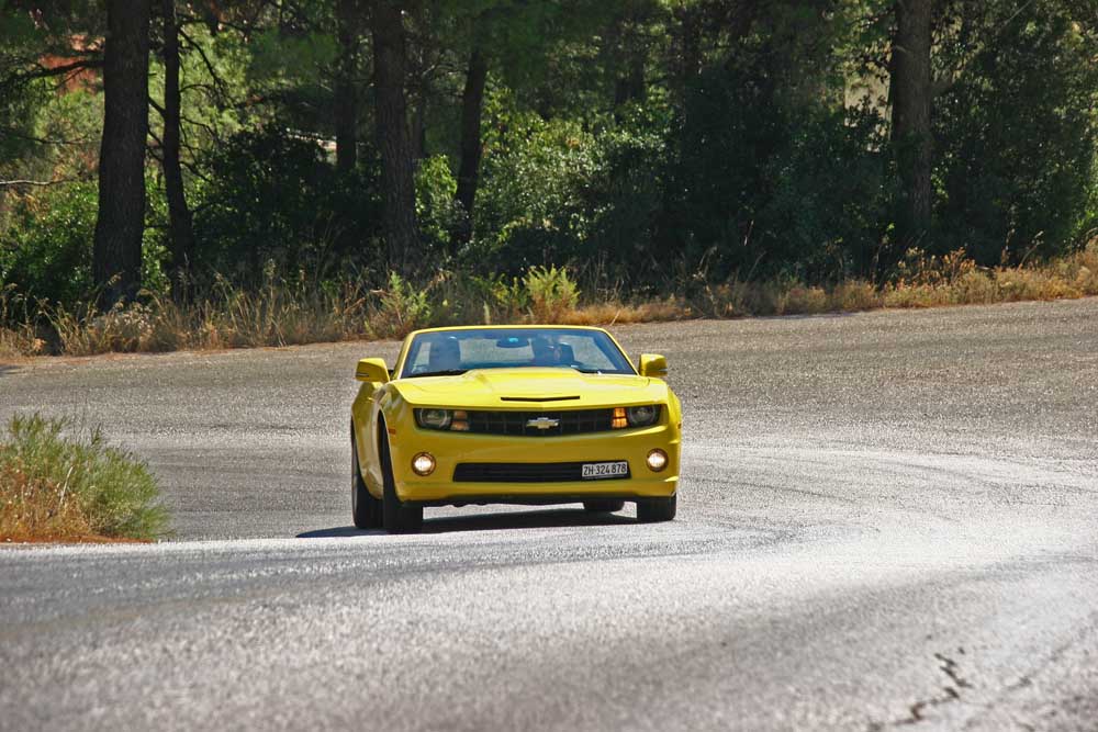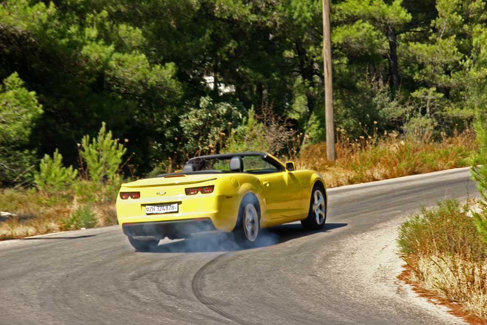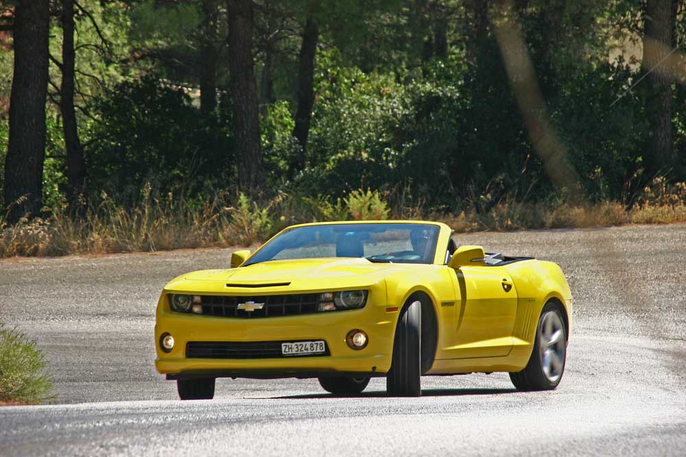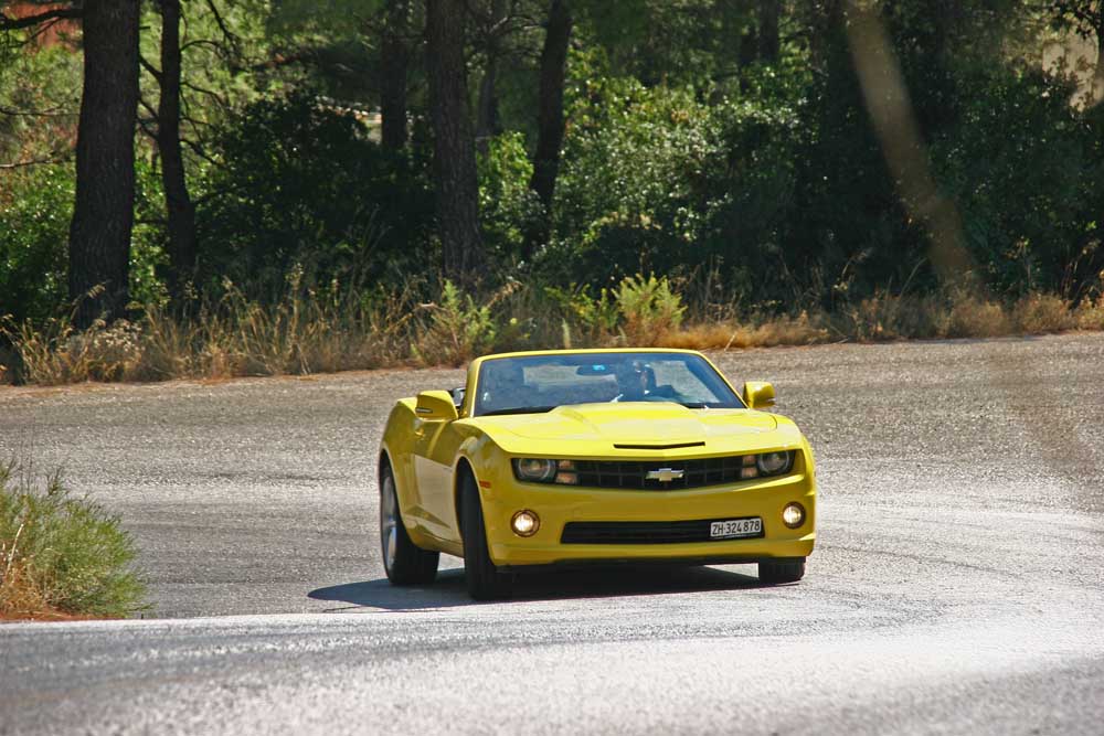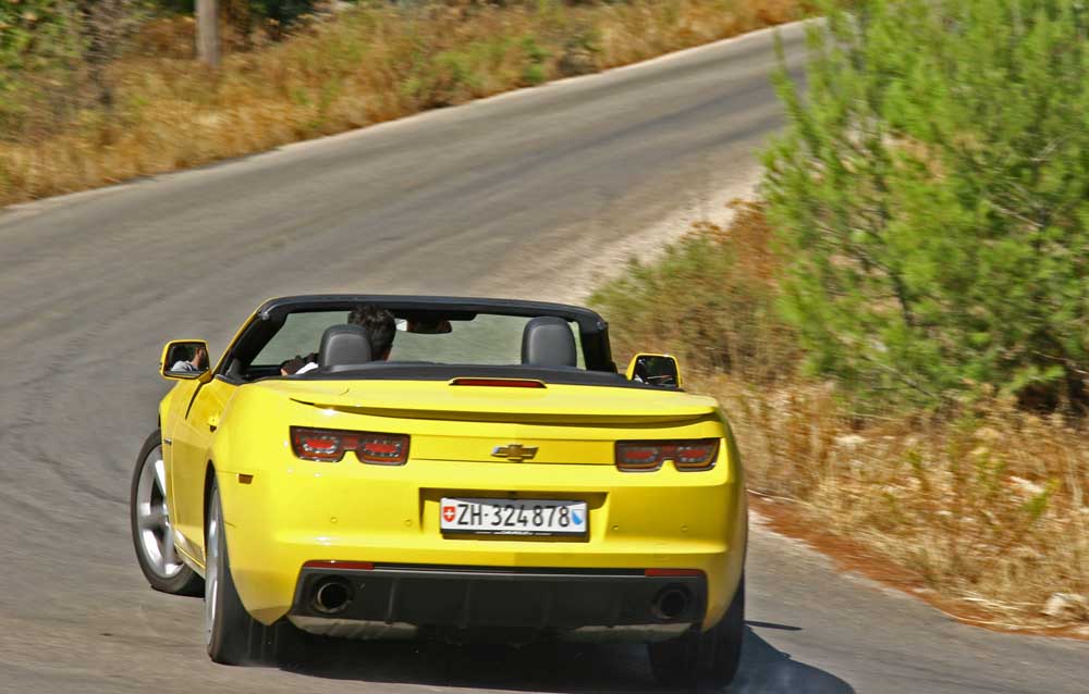 Σοκ και δέος. Για την ακρίβεια πρώτα έρχεται το «σοκ» όταν σε μια απαγορευτική -για τα δίλιτρα και άνω επιβατικά- αγορά συναντάς μια V8 κατασκευή 6.162 cc και κατόπιν έρχεται το «δέος» περιμένοντας η φανταχτερά κίτρινη Camaro να μεταμορφωθεί σε Transformer. «Πάτα το κουμπί να γίνει τώρα ρομπότ!», φωνάζει ένας πιτσιρικάς από το πεζοδρόμιο. Φυσικά, το μόνο μπουτόν μετάλλαξης στην Camaro -με τις ελβετικές πινακίδες που είχαμε στην διάθεσή μας για μερικές απολαυστικές μέρες- είναι αυτό της ηλεκτροκίνητης μαλακής οροφής.