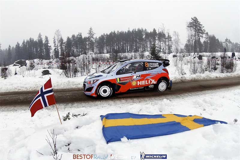 Στην 2η θέση βρέθηκε ο Andreas Mikkelsen ο οποίος πανηγύρισε την 1η του νίκη στο WRC με Polo αν και δεν ανήκει στην εργοστασιακή ομάδα, ενώ το βάθρο συμπλήρωσε ο Mads Ostberg με Citroen. Ο Mikko Hirvonen προτίμησε να μην το ρισκάρει για την 3η θέση και τερμάτισε 4ος με το Ford Fiesta της M-Sport ενώ στην 5η θέση βρέθηκε ο Ott Tanak με επίσης Ford. Δύσκολο έργο είχε στο χιόνι ο Robert Kubitsa ο οποίος υπέπεσε σε πολλά λάθη χάνοντας πολύτιμο χρόνο και θέσεις.