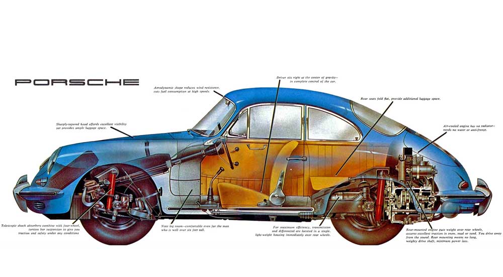 Κάπου εδώ κρύβεται η μαγεία της Porsche 911 από το 1963 (που ως «901» και με μακρύτερο μεταξόνιο διαδέχτηκε την 356), αναβαθμισμένο σασί και νέο εξακύλινδρο boxer κινητήρα. Το 1971, η 911 λίγο έλειψε να αφανιστεί από την 914, διάταξης «FR», αλλά η μέτρια απήχηση της τελευταίας (με υγρόψυκτο μοτέρ εμπρός και κίνηση πίσω) -αλλά και των 924 (το 1975) και 928 (το 1977)- έσωσε την παρτίδα για το «icon» μοντέλο της Porsche.