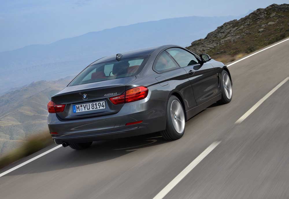 Στον αντίποδα, ο δίλιτρος ντίζελ είναι ένα επίσης εξαιρετικό μοτέρ (common rail με τουρμπίνα μεταβλητής γεωμετρίας) το οποίο προτιμούμε σε βαρύτερα και μεγαλύτερα BMW. Στην Σειρά 4, τα καταφέρνει περίφημα και ροπάτα, αλλά όχι τόσο εκρηκτικά όσο θα ήθελες την ώρα που αναζητάς ένα time-out (στο κάτω-κάτω, για αυτό επιλέγεις το κουπέ και όχι το σεντάν) και σίγουρα πολύ πιο ήσυχα (δίχως κροτάλισμα και μικροκραδασμούς).