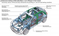 Η Mercedes σχεδιάζει να εισάγει σε τέσσερα χρόνια μία νέα προσθιοκίνητη πλατφόρμα για την GLA που νωρίτερα -το 2016- θα τοποθετηθεί και στα λοιπά προσθιοκίνητα μοντέλα της (A-Class, CLA και φυσικά στις τετρακίνητες εκδοχές). Ο κύριος λόγος είναι πως το σασί -που βασίζεται στο τρέχων πλαίσιο- δεν υποστηρίζει τα νέας γενιάς ηλεκτρονικά συστήματα, ούτε μπορεί να υποστηρίξει την τοποθέτηση υβριδικών συστημάτων πρόωσης, ηλεκτρικών (χωροταξικό πρόβλημα με τις μπαταρίες) και φυσικού αερίου (εδώ με τις δεξαμενές αερίου).