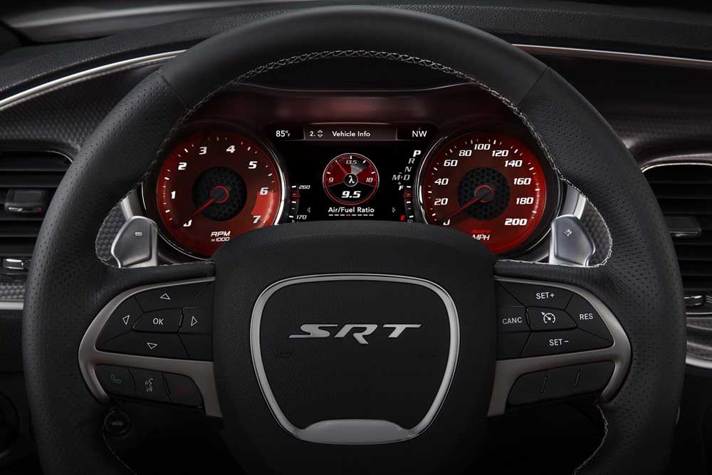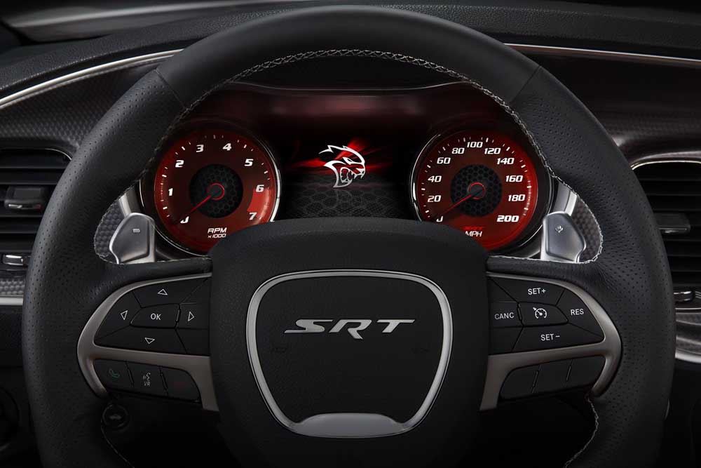 Το Dodge Charger SRT Hellcat θα μπει στην παραγωγή από το επόμενο έτος δίχως να έχει ανακοινωθεί ακόμη η τιμή πώλησής του. Πάντως, στο εσωτερικό εκτείνεται ανάλογο ύφος με «κοφτό» στην βάση του τιμόνι, θερμαινόμενα/αεριζόμενα σπορ καθίσματα καλυμμένα με δέρμα νάπα και αλκαντάρα. Ο πίνακας οργάνων είναι ψηφιακός ενώ το ηχοσύστημα της Harmon Kardon με 18 ηχεία συνδυάζεται με σύστημα πολυμέσων και οθόνη αφής 8,4 ιντσών. Αυτά για ένα σύγχρονο muscle car που υπάρχουν ελάχιστες πιθανότητες να δούμε ποτέ από κοντά…