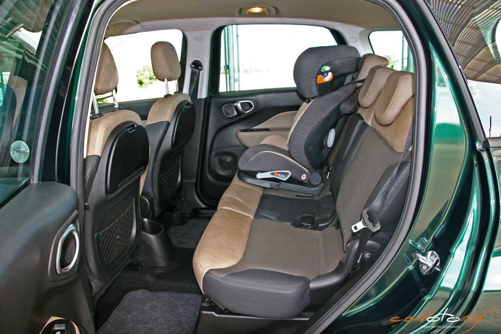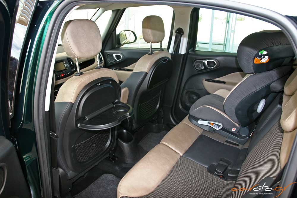 Μιλώντας για διαστάσεις, το 500L Living είναι μεγαλύτερο από το απλό 500L κατά 205 mm και ψηλότερο κατά 2 mm. Το επιπρόσθετο μήκος οι Ιταλοί το χάρισαν αποκλειστικά στο πίσω μέρος, στο οποίο τοποθετείται προαιρετικά και 3η σειρά καθισμάτων. Πρόκειται για μικρά (παιδικά) καθίσματα και η τοποθέτησή τους κοστίζει κάτι λιγότερο από €1000. Η πρόσβαση στην τρίτη σειρά καθισμάτων γίνεται αρκετά εύκολα, αφού πρώτα αναδιπλωθούν τα ακριανά καθίσματα της δεύτερης σειράς.