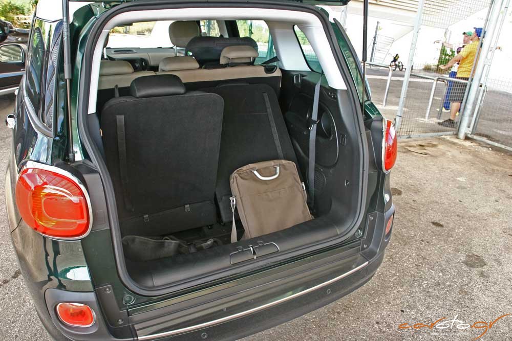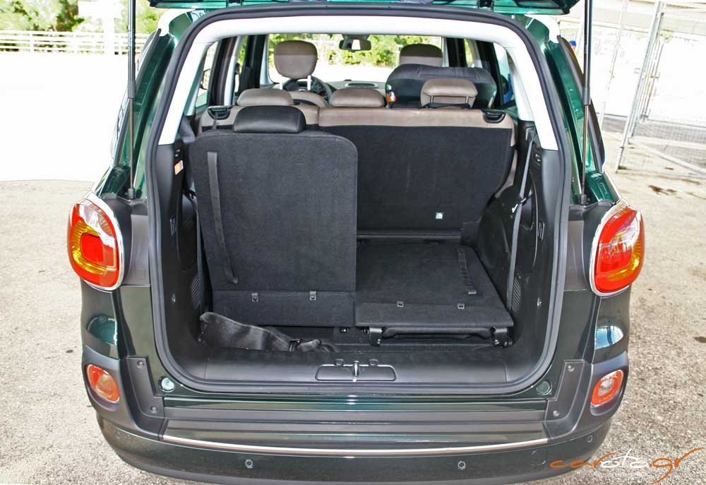 Εκτός από επιβάτες, το 500L Living μπορεί να μεταφέρει με αρκετή άνεση και αποσκευές. Η δεύτερη σειρά καθισμάτων είναι συρόμενη και όλα τα καθίσματα της δεύτερης και τρίτης σειράς πέφτουν ώστε να αφήσουν ελεύθερο συνολικό χώρο φόρτωσης 1708 λίτρων, με μέγιστο μήκος 2,6 μέτρα. Αλλά ακόμη και με επιβάτες υπάρχει επαρκής χώρος αποσκευών: 560-638 lt στην 5θέσια διάταξη και 168 lt στην 7θέσια. Αν μη τι άλλο, πρόκειται για ένα… αυθεντικό MPV!