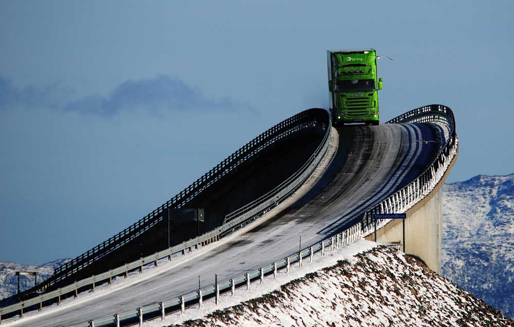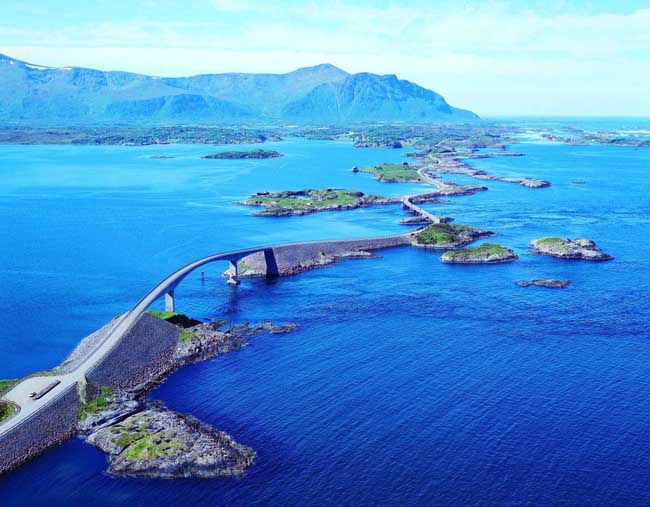Ο δρόμος Atlanterhavsveien (στα Νορβηγικά σημαίνει Ατλαντική Οδός) βρίσκεται στην πανέμορφη Νορβηγία και έχει μήκος 8,3 km. Η κατασκευή του ολοκληρώθηκε το 1989 (αν και υπήρχε αρχική πρόβλεψη για σιδηρόδρομο) και πλέον συνδέει τα διάσπαρτα νησάκια που υπάρχουν γύρω. Για αυτό έχει εναλλασσόμενες στροφές με αποκορύφωμα μία ανηφορική σε σχήμα αψίδας. Με φόντο τη Νορβηγική οροσειρά πραγματικά αυτή η διαδρομή πρέπει να είναι μαγική για οδήγηση και σίγουρα θα θέλαμε, όπως και εσείς, να την επισκεφτούμε κάποια στιγμή.