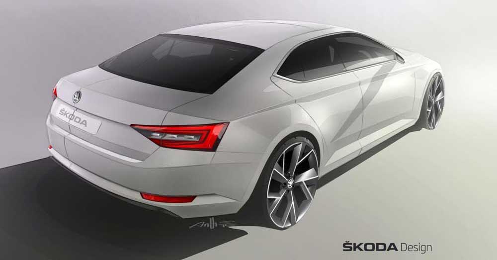 2015 Skoda Superb design sketchΜετά από μερικές φωτογραφίες με φουλ καμουφλάζ, η Skoda δίνει στην δημοσιότητα ένα σκίτσο «από το καλύτερο μοντέλο που έχει κατασκευάσει ποτέ», όπως το περιγράφει η εταιρία. Αυτή θα είναι η 3η γενιά Superb η οποία λογικά θα έχει μεγαλύτερη διαστάσεις από το απερχόμενο μοντέλο, μιας και θα συμπιεστεί από το τωρινό Octavia.