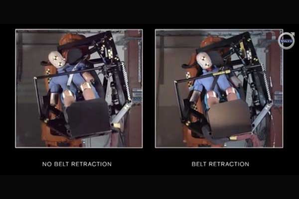 Volvo Vision 2020 (5)Χρησιμοποιώντας δεδομένα από το προηγμένο σύστημα αισθητήρων του αυτοκινήτου, η τεχνολογία Safe Positioning μπορεί να ανιχνεύσει την εκτροπή εκτός δρόμου. Οι ζώνες ασφαλείας εμπρός συσφίγγονται με έναν ηλεκτρικό μηχανισμό όσο το δυνατόν περισσότερο, για να επαναφέρουν και να συγκρατήσουν τους επιβαίνοντες στη θέση τους. Η ικανότητα σύμπτυξης του ηλεκτρικού μηχανισμού είναι 1 mm/ms (που σημαίνει ότι μπορεί να συμπτύξει τη ζώνη ασφαλείας κατά 10 εκατοστά σε μόλις ένα δέκατο του δευτερολέπτου). Οι ζώνες παραμένουν σταθερά σφιγμένες όσο το αυτοκίνητο συνεχίζει να κινείται.