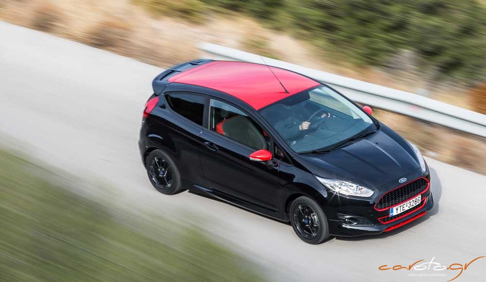 Σχεδιαστικά το Fiesta Black Edition που είχαμε στη διάθεσή μας είχε σαν βασικό χρώμα το μαύρο και η οροφή και αρκετές λεπτομέρειές του είχαν κόκκινο χρώμα (στο Red Edition ισχύουν ακριβώς τα αντίθετα). Η εντυπωσιακή διχρωμία συνεχίζεται και στο εσωτερικό, το οποίο είναι καλοφτιαγμένο και εργονομικά άρτιο. Μπορεί η τιμή των €16.715 να είναι κάπψς υψηλή για ένα μικρό τρίθυρο αυτοκίνητο, όμως δικαιολογείται πλήρως από την υψηλή τεχνολογία, την εξαιρετική οδική συμπεριφορά και τον πλούσιο εξοπλισμό που μεταξύ άλλων περιλαμβάνει επτά αερόσακους.