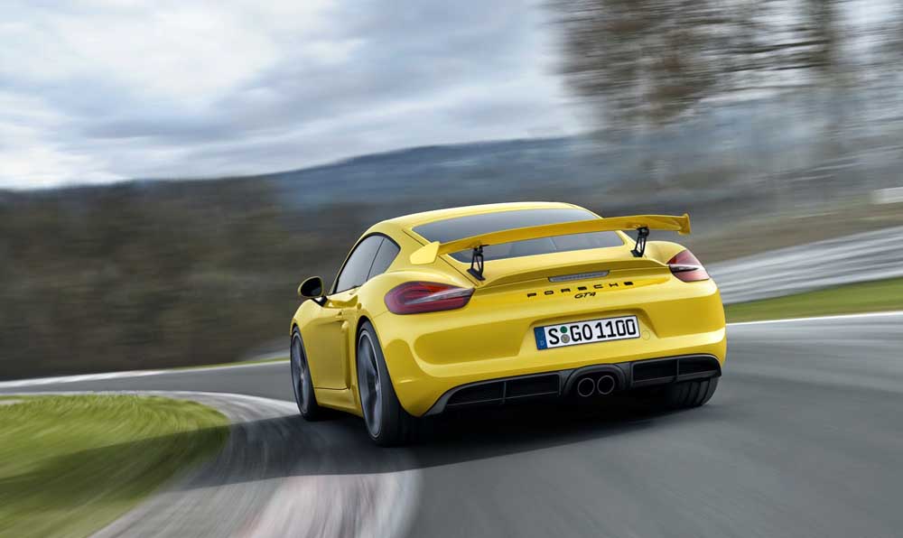 Porsche-Cayman-GT4-2Από εκεί και πέρα έχουν υιοθετηθεί αρκετά στοιχεία από την 911 GT3 με το σασί να βρίσκεται 30 mm χαμηλότερα στο έδαφος (από τις συμβατικές εκδόσεις Cayman), ενώ προαιρετικά υπάρχουν κεραμικά δισκόφρενα και τα πακέτα Sport Chrono και Clubsport. Οπτικά η Cayman GT4 ξεχωρίζει από τη μεγάλη, σταθερή πίσω αεροτομή της, ενώ διαφοροποιημένος είναι και ο εμπρός προφυλακτήρας της, ο οποίος κατεβαίνει αρκετά πιο χαμηλά και διαθέτει για την περίσταση τρεις μεγάλες εισαγωγές αέρα.