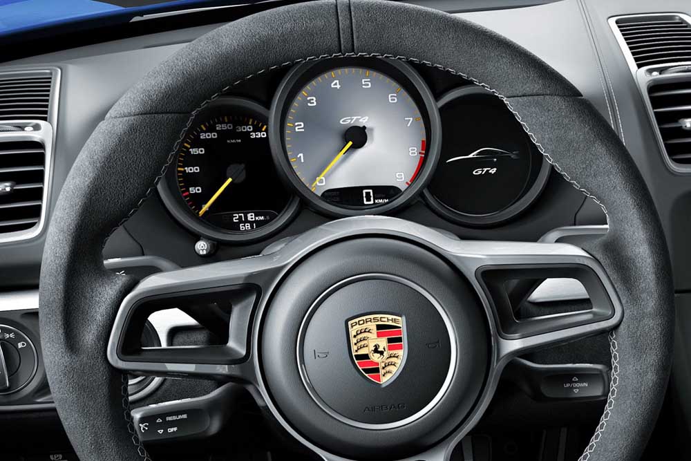 Porsche-Cayman-GT4-8Διαφορετικές είναι και οι εισαγωγές αέρα στα πίσω φτερά με τις 20άρες ζάντες, ενώ στο εσωτερικό τα στάνταρ καθίσματα είναι τύπου μπάκετ με επένδυση από δέρμα και αλκαντάρα -υπάρχουν και αγωνιστικού τύπου διαθέσιμα από συνθετικά υλικά ενισχυμένα με ανθρακόνημα- ενώ το τιμόνι με τον πίνακα οργάνων είναι ειδικά για τη συγκεκριμένη έκδοση. Η νέα Porsche Boxster GT4 πιθανότατα θα είναι η τελευταία εκδοχή του τωρινού μοντέλου που στην Γερμανία κοστίζει από 85.776 ευρώ. Ήδη οι Γερμανοί στο Τσούφενχάουζεν δουλεύουν πάνω στη νέα γενιά…