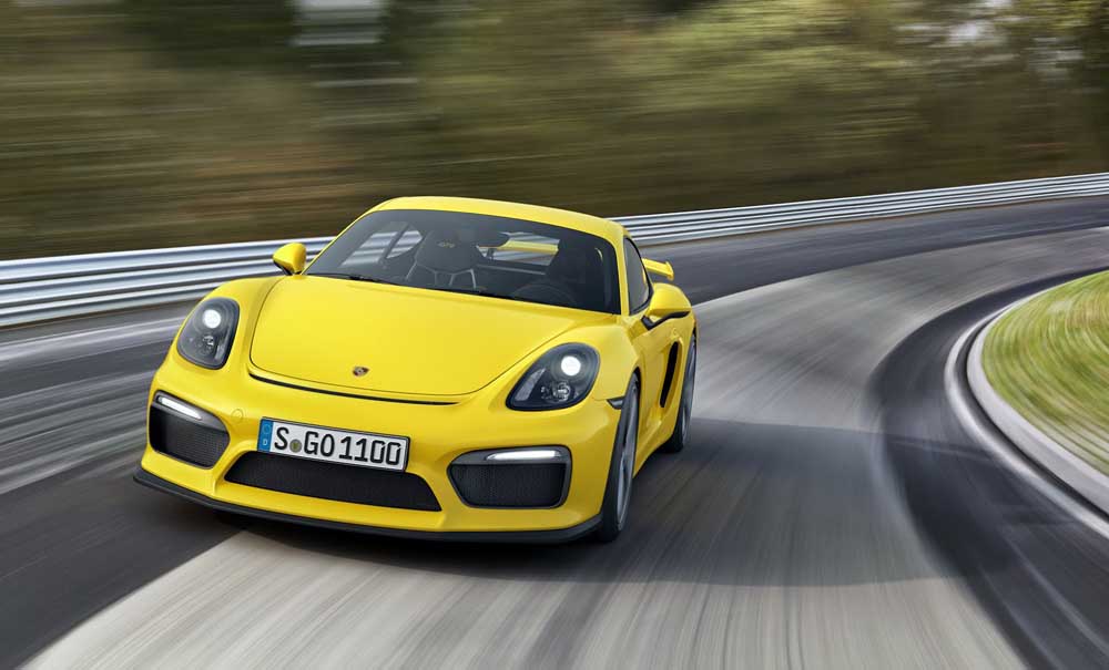 Porsche-Cayman-GT4-7Μέχρι να δούμε την Cayman με τους νέους τούρμπο τετρακύλινδρους boxer, η GT4 μας δείχνει τα περιθώρια εξέλιξης του γερμανικού κεντρομήχανου. Για την ακρίβεια, ο «flat-six» (επίπεδος εξακύλινδρος) των 3,8 lt προέρχεται από την 911 Carrera S, αλλά για την Cayman η ισχύς έχει μειωθεί κατά 15 άλογα (στα 385 από τα 400, προφανώς για λόγους γοήτρου). Σχετικά με τις επιδόσεις η Cayman GT4 με το μηχανικό 6άρι κιβώτιο, για να επιταχύνει από στάση έως τα 100 km/h χρειάζεται 4,4 sec, ενώ το κοντέρ της Porsche αγγίζει τα 295 km/h.