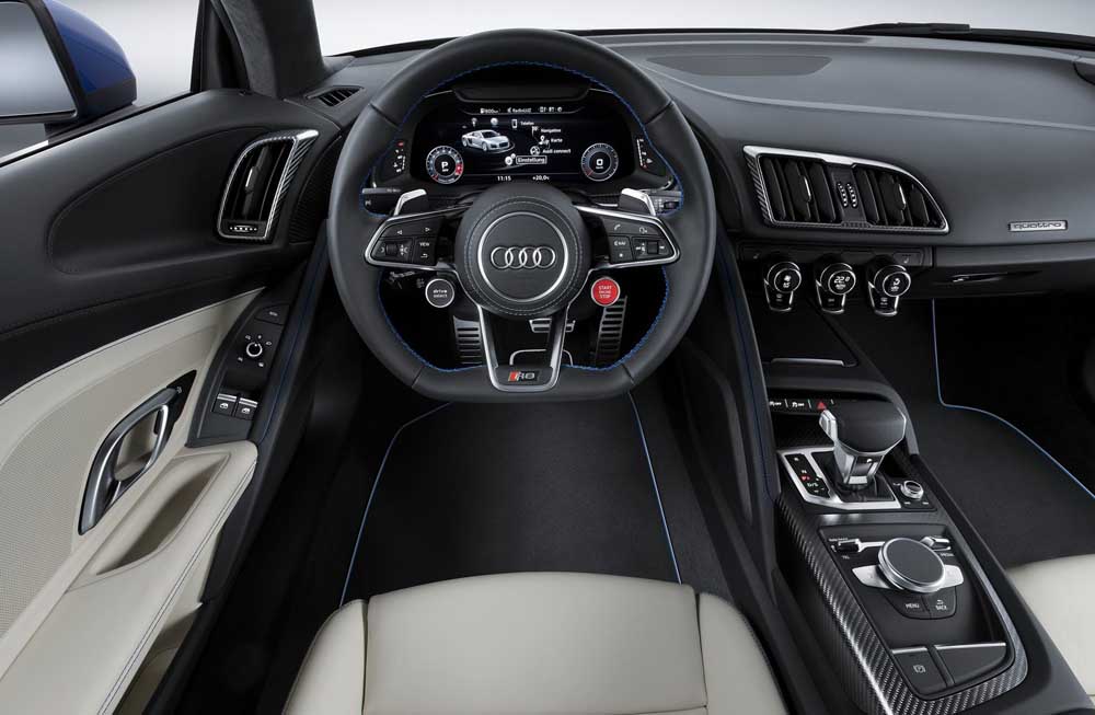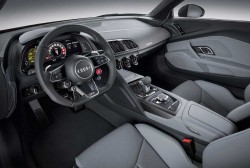 Στο εσωτερικό επικρατεί η οδηγοκεντρική άποψη με τα ολοκαίνουργια μπάκετ και τον πλήρως ψηφιακό πίνακα οργάνων με την οθόνη 12,3’’ που είδαμε για πρώτη φορά στο νέο TT. Οι υποψήφιοι αγοραστές θα έχουν να επιλέξουν ανάμεσα σε Alcantara/Nappa ή φουλ Nappa επένδυση, ενώ το ηχοσύστημα 500 Watt της Bang & Olufsen είναι προαιρετικό. Τέλος να πούμε πως το νέο Audi R8 θα πωλείται από το καλοκαίρι από 165.000 ευρώ με το R8 V10 Plus να κοστίζει από 187.400 ευρώ (στην Γερμανία).