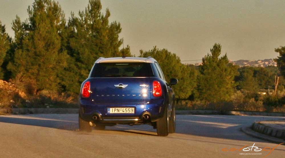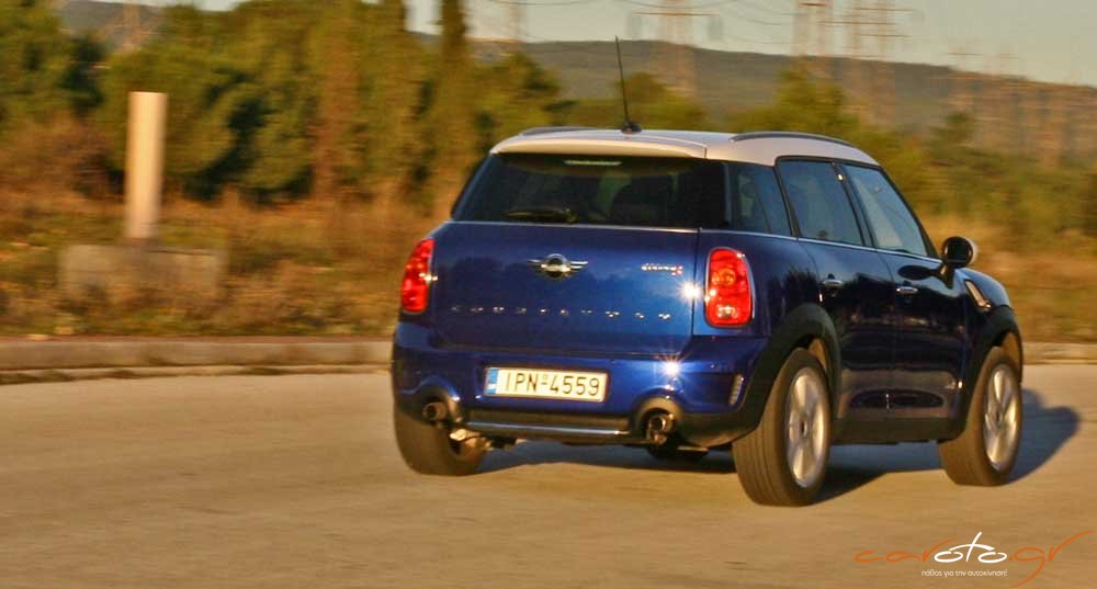 Συνολικά η αίσθηση που αφήνει είναι καλύτερη από το προ facelift μοντέλο, αν και δεν φτάνει αυτή του κλασικού Mini Cooper S. Fun to drive φιλοσοφία, που δεν απαιτεί ιδιαίτερες οδηγικές γνώσεις και δείχνει έτοιμη να συγχωρήσει αρκετά λάθη. Το μόνο που πιθανά δεν θα συγχωρήσει είναι η έντονη εκτός δρόμου χρήση, αφού τα χαμηλού προφίλ ελαστικά και η σχετικά περιορισμένη απόσταση από το έδαφος δεν ενδείκνυνται για υπερβολές.