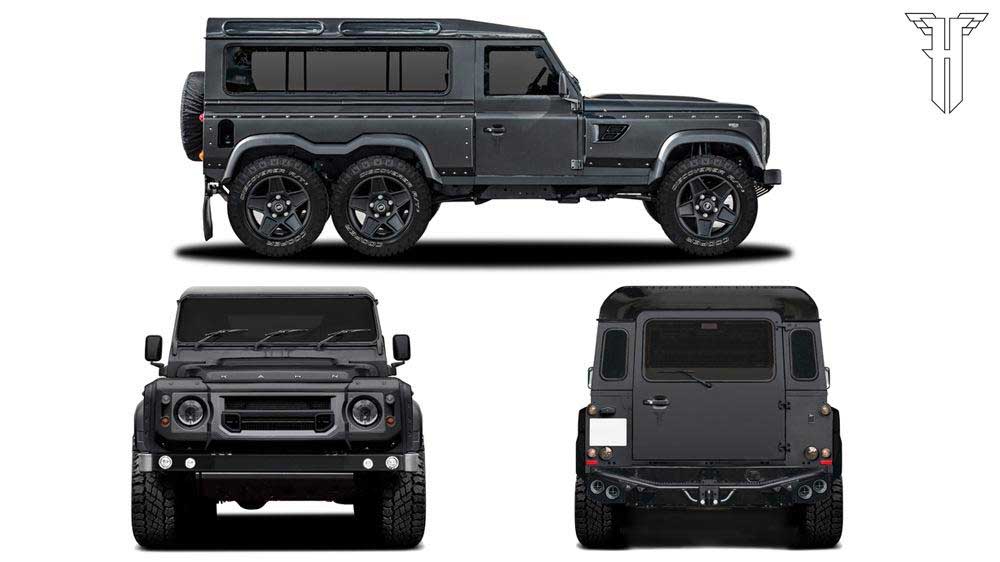 Σε σχέση με το συμβατικό Defender, στο πρωτότυπο 6×6 το εμπρός μέρος έχει επιμηκυνθεί κατά 400 mm, η πίσω καμπίνα κατά 800 mm ενώ στο πλάτος έχουν προστεθεί 150 mm. Από πλευράς εμφάνισης, το τελικό αποτέλεσμα είναι εντυπωσιακό και η Kahn Design σκοπεύει να προχωρήσει στην περιορισμένη παραγωγή έως 5 διαφορετικών εκδόσεων με 4 ή 6 τροχούς. Περισσότερες φωτογραφίες θα έχουμε να σας παρουσιάσουμε με το ντεμπούτο του αυτοκινήτου στην Γενεύη, μείνετε δικτυωμένοι στο caroto.gr!