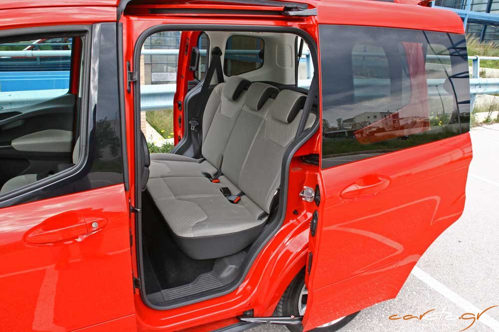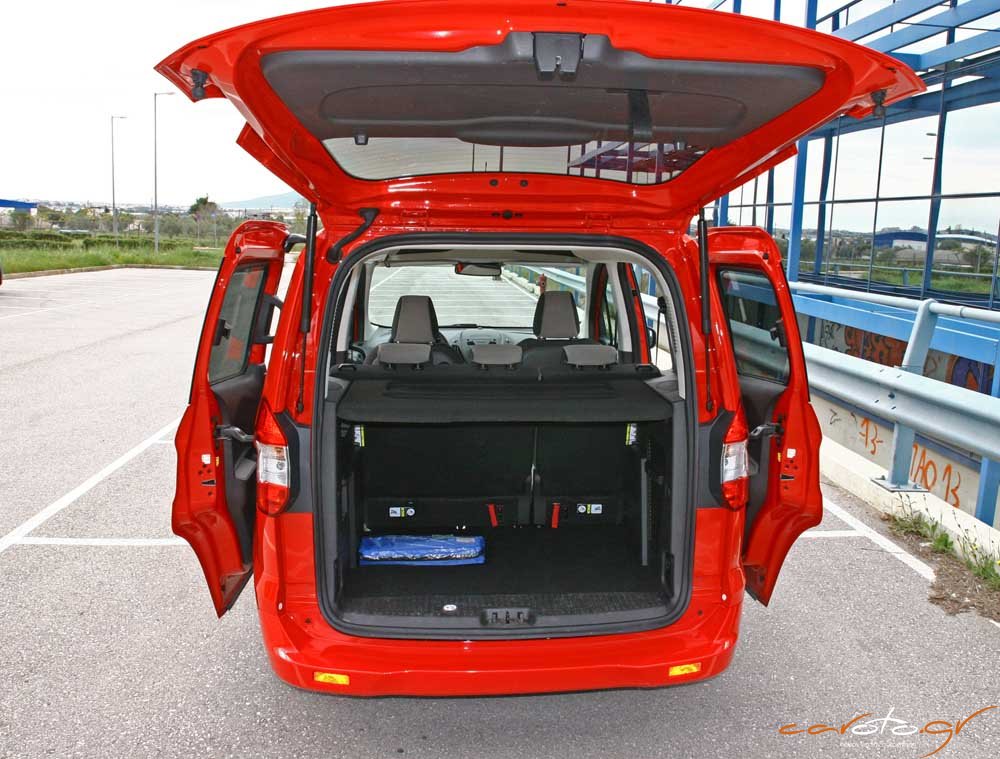 Όπως είπαμε το μεγάλο ατού του Tourneo Courier είναι οι χώροι και στα πίσω καθίσματα θα βολευτούν με άνεση έως και τρία άτομα με περίσσεια αέρα πάνω από τα κεφάλια τους. Στις πλάτες των καθισμάτων υπάρχουν τραπεζάκια αεροπορικού τύπου, ενώ ο χώρος αποσκευών προσφέρει από 395 lt έως 705 lt μέχρι την οροφή. Τώρα, αν αναδιπλώσετε τα πίσω καθίσματα (κάτι που γίνεται εύκολα) η πρακτικότητα εκτοξεύεται στα 1.656 lt. Ολοκληρώνοντας πρέπει να πούμε πως το Tourneo μας άρεσε. Είναι πρακτικό, καλοστημένο, με έναν οικονομικό ντίζελ και λογική τιμή πώλησης…