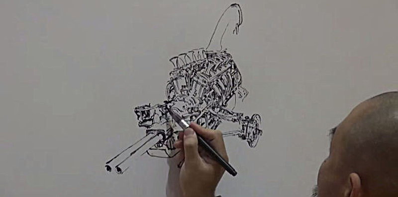 Δείτε στο παραπάνω βίντεο τον Κορεάτη Kim Jung Gi να σχεδιάζει ολόκληρο κινητήρα στο… χαλαρό!