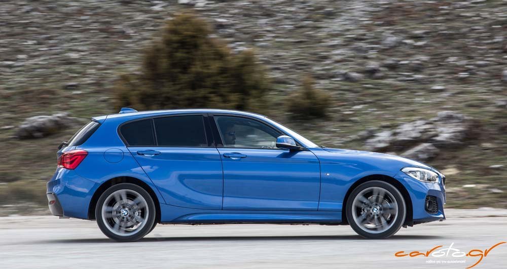 Ασχέτως του ποιο από τα τέσσερα διαθέσιμα οδηγικά modes θα επιλέξει ο οδηγός (Eco, Comfort, Sport και Sport+), η 118i δεν δείχνει πουθενά “πλαδαρή”. Το setup της είναι ελαφρά σφιχτό, ώστε να παρακολουθεί πιστά το ανάγλυφο του δρόμου, απορροφώντας όμως επιτυχώς τη συντριπτική πλειοψηφία των ανωμαλιών. Τα χαμηλοπρόφιλα ελαστικά εδώ δεν βοηθούν πολύ, χαρίζουν όμως άφθονη ελκτική και πλευρική πρόσφυση, γεμίζοντας αυτοπεποίθηση όποιον θελήσει να κινηθεί με ρυθμούς πιο γρήγορους από το κανονικό.