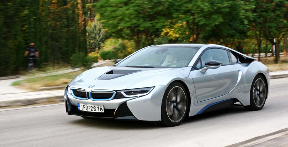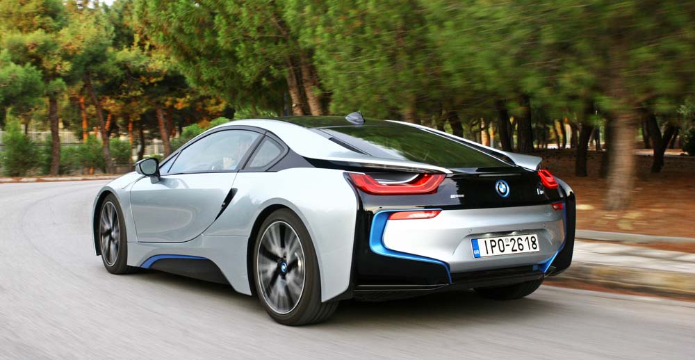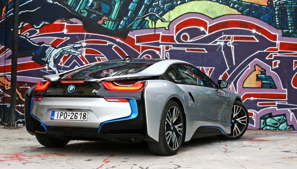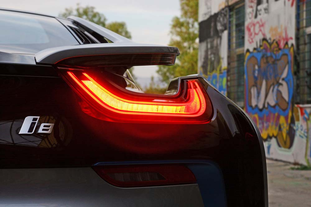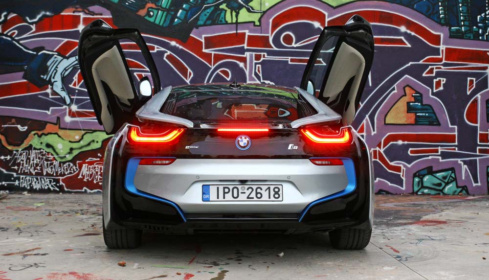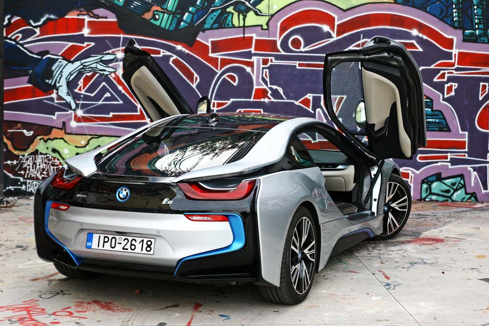 Αν αυτή την στιγμή η λέξη «ξεχωριστό» ταιριάζει γάντι σε ένα και μόνο αυτοκίνητο, τότε αυτό δεν είναι άλλο από αυτό που βλέπετε στην οθόνη σας. Από όπου και αν περάσαμε ήταν σχεδόν αδύνατο το BMW i8 να περάσει απαρατήρητο προκαλώντας επιφωνήματα θαυμασμού με αρκετούς να τραβούν… smartphone για να το αποθανατίσουν, να ποστάρουν και τα σχετικά. Συγχαρητήρια στον Γάλλο σχεδιαστή Benoit Jacob, μπράβο στην BMW που τόλμησε να δώσει το πράσινο φως σε ένα τόσο προχωρημένο σχήμα θαρρείς και έρχεται από τον ψηφιακό κόσμο του Gran Turismo (της Sony). Προφανώς, τα πολλά λόγια είναι μάλλον λίγα για να περιγράψεις ένα εντελώς αντισυμβατικό σχήμα με περίτεχνα αεροδυναμικό σχήμα (με Cd 0,26) και την πίσω κολόνα να εκτείνεται σαν πτερύγιο πάνω από τα φωτιστικά σώματα. Στην θέση του θα μπορούσε να βρίσκεται μία σύγχρονη M1 ή μία νέα Z8. Εντούτοις, η BMW επέλεξε να προσθέσει δίπλα στο i3 ένα ηλεκτροϋβριδικό sportcar αφήνοντας ενδιάμεσα χώρο για ένα πιο family μοντέλο που λογικά θα ονομάζεται i5…