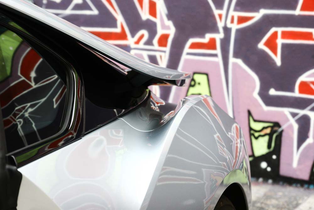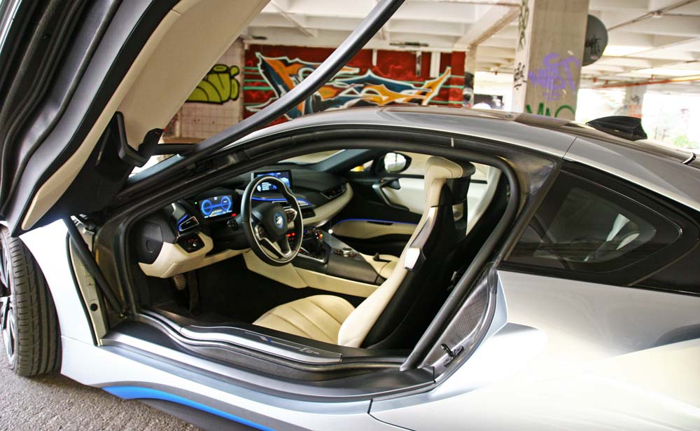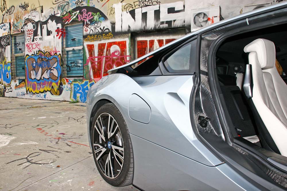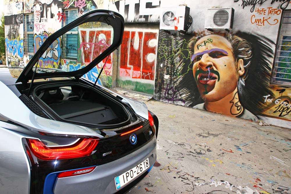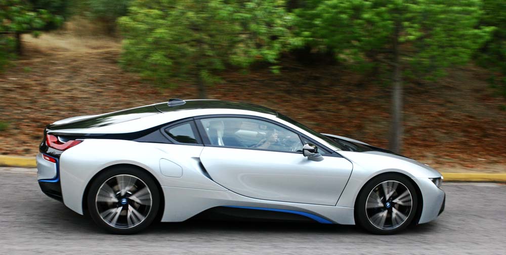 Αν αυτή την στιγμή η λέξη «ξεχωριστό» ταιριάζει γάντι σε ένα και μόνο αυτοκίνητο, τότε αυτό δεν είναι άλλο από αυτό που βλέπετε στην οθόνη σας. Από όπου και αν περάσαμε ήταν σχεδόν αδύνατο το BMW i8 να περάσει απαρατήρητο προκαλώντας επιφωνήματα θαυμασμού με αρκετούς να τραβούν… smartphone για να το αποθανατίσουν, να ποστάρουν και τα σχετικά. Συγχαρητήρια στον Γάλλο σχεδιαστή Benoit Jacob, μπράβο στην BMW που τόλμησε να δώσει το πράσινο φως σε ένα τόσο προχωρημένο σχήμα θαρρείς και έρχεται από τον ψηφιακό κόσμο του Gran Turismo (της Sony). Προφανώς, τα πολλά λόγια είναι μάλλον λίγα για να περιγράψεις ένα εντελώς αντισυμβατικό σχήμα με περίτεχνα αεροδυναμικό σχήμα (με Cd 0,26) και την πίσω κολόνα να εκτείνεται σαν πτερύγιο πάνω από τα φωτιστικά σώματα. Στην θέση του θα μπορούσε να βρίσκεται μία σύγχρονη M1 ή μία νέα Z8. Εντούτοις, η BMW επέλεξε να προσθέσει δίπλα στο i3 ένα ηλεκτροϋβριδικό sportcar αφήνοντας ενδιάμεσα χώρο για ένα πιο family μοντέλο που λογικά θα ονομάζεται i5…