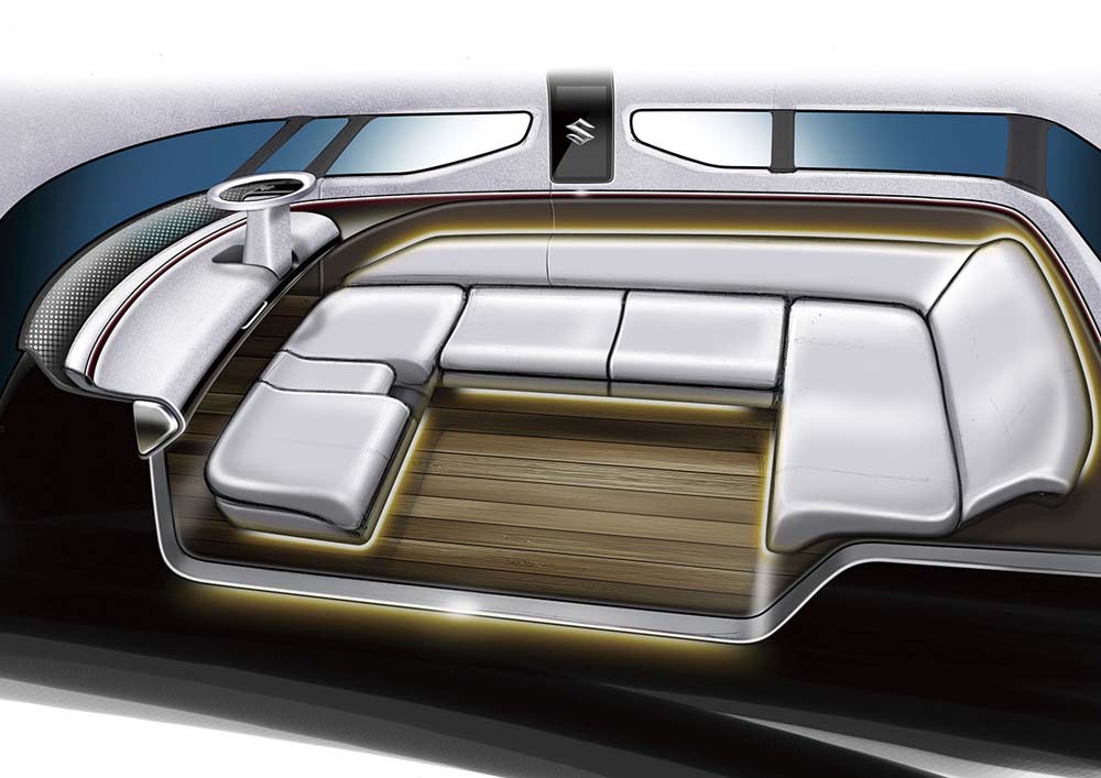 Η είσοδος στο εσωτερικό του Air Triser γίνεται από δύο συρόμενες πόρτες, ενώ όταν είναι σταθμευμένο μπορεί να μετατραπεί από σαλονάκι, με τα καθίσματα τοποθετημένα αντικρυστά, μέχρι σε lounge, με έναν «καναπέ» από άκρη σε άκρη. Για αυτήν την περίπτωση υπάρχει και οθόνη, καθώς και όλες οι δυνατότητες διασύνδεσης. Κατά τα άλλα το εσωτερικό είναι μινιμάλ, με το μόνο στοιχείο που ξεχωρίζει στο ταμπλό να είναι η οθόνη αφής στο κέντρο του.