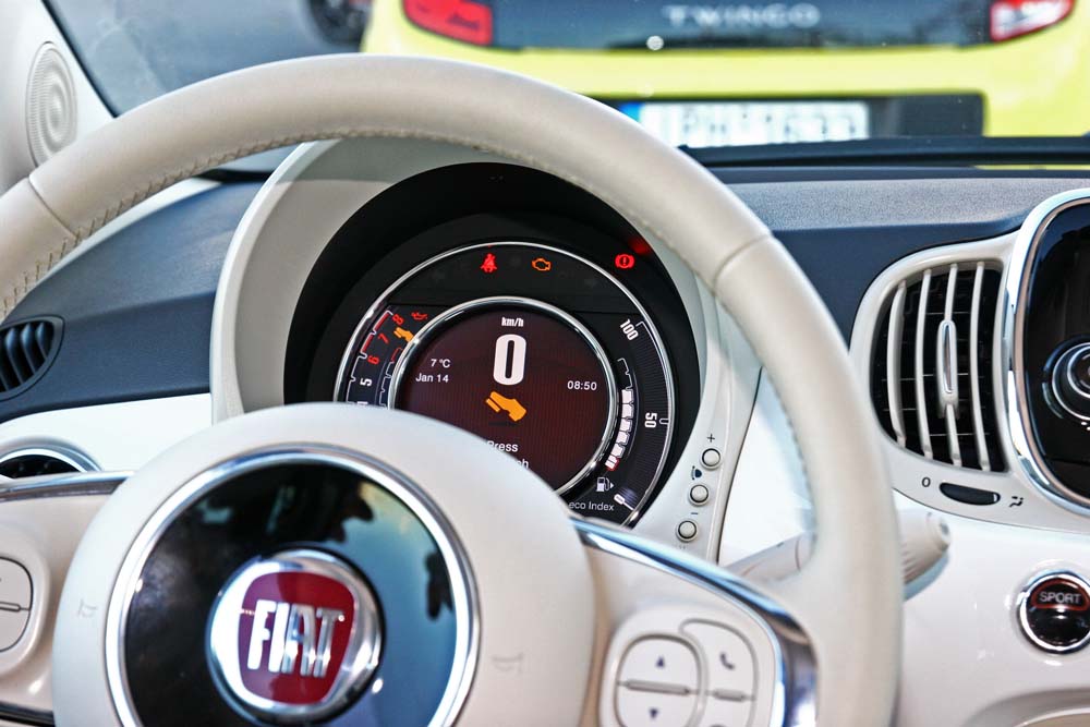 Περνώντας στο εσωτερικό και τα τρία οχήματα προσφέρουν μία σχετικά άνετη θέση οδήγησης, με καλή περιμετρική ορατότητα. Παρότι, δε, εργονομικά ακολουθούν διαφορετικές προσεγγίσεις, στην πράξη δεν πρόκειται να προβληματίσουν τον οδηγό. Εάν πάντως διέθεταν κάπως μεγαλύτερους και πιο πρακτικούς χώρους για μικροαντικείμενα, τα πράγματα θα ήταν σίγουρα καλύτερα. Αναφορικά με τον πίνακα οργάνων, το 500 δείχνει πιο προσεγμένο, αφού με το πάτημα του κουμπιού sport αλλάζουν (μεταξύ άλλων) τα γραφικά, προσφέροντας έτσι μία πιο ενδιαφέρουσα εμπειρία στο χρήστη.