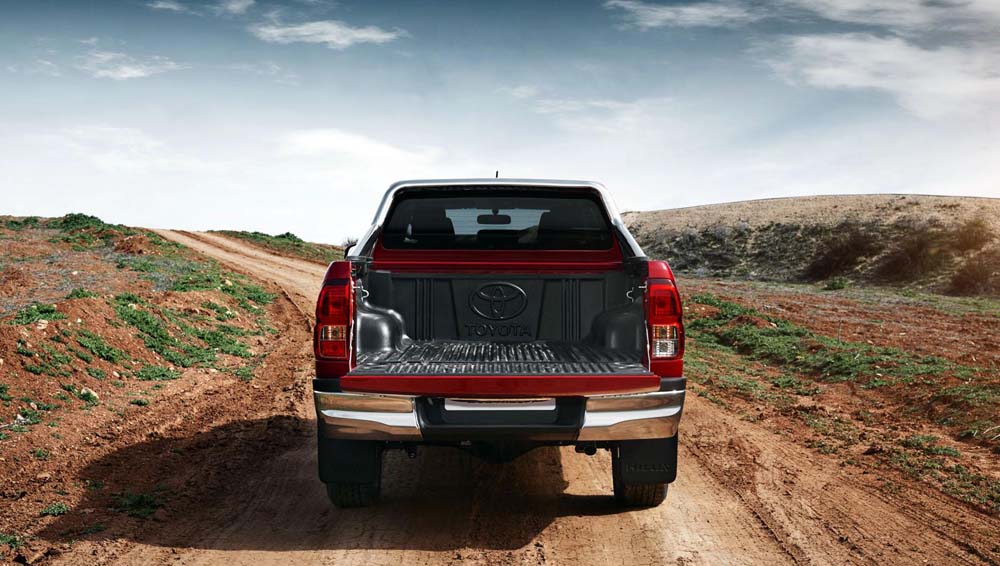 Πλαισιωμένο από νέα σχεδίαση πίσω φώτων που ενσωματώνει σταθεροποιητικά πτερύγια για βελτίωση της αεροδυναμικής απόδοσης, το πίσω τμήμα του νέου Hilux έχει ένα νέο, ατσάλινο προφυλακτήρα που τοποθετείται πιο κοντά στο έδαφος, βελτιώνοντας το σκαλοπάτι πρόσβασης στην καρότσα όταν η πίσω πόρτα είναι κλειστή. Η κάμερα οπισθοπορείας είναι τώρα ενσωματωμένη στη χειρολαβή για πιο απέριττη εμφάνιση και καλύτερη ορατότητα.