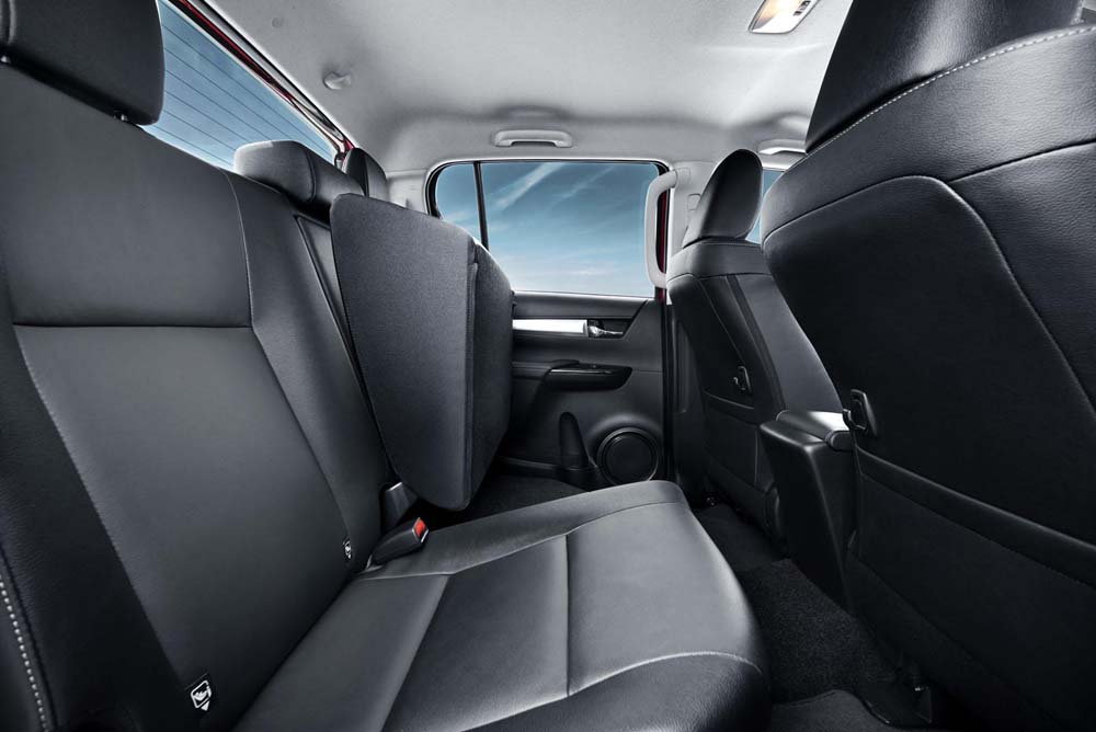 Στα μοντέλα Extra Cab και Double Cab, τα πίσω καθίσματα επωφελούνται από τη βελτιστοποίηση τόσο του σκελετού όσο και της επένδυσης, με αποτέλεσμα καλύτερη στήριξη του σώματος και των ποδιών. Αυτή η αυξημένη άνεση αναβαθμίζεται με μία μείωση στο πάχος της πλάτης των εμπρός καθισμάτων, κάτι που απελευθερώνει περισσότερο χώρο για τα πόδια προσθέτει +10 mm στην περιοχή των γονάτων των πίσω επιβατών.