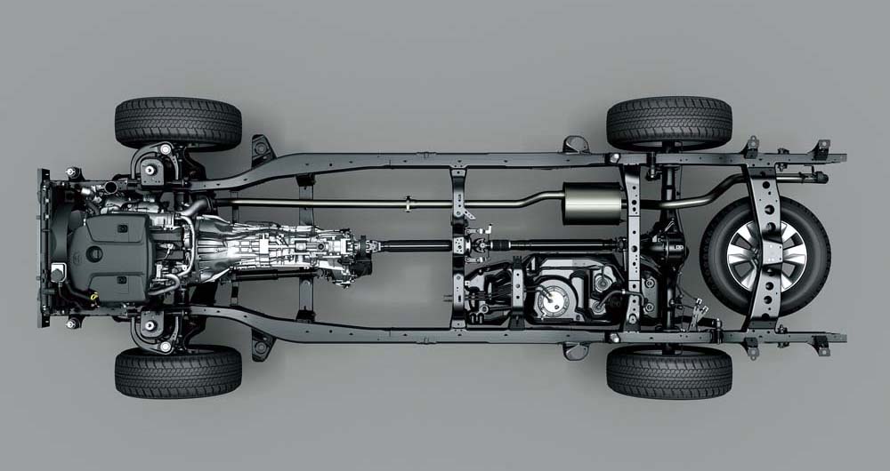 QDR – Νέο, ανθεκτικότερο πλαίσιο τύπου σκάλας, ενισχυμένη δομή καρότσας και συστήματα Active Traction Control (A-TRC), Downhill Assist Control (DAC) και Hill-start Assist Control (HAC) αναβαθμίζουν τις δυνατότητες 4×4 σε επίπεδα Land Cruiser.