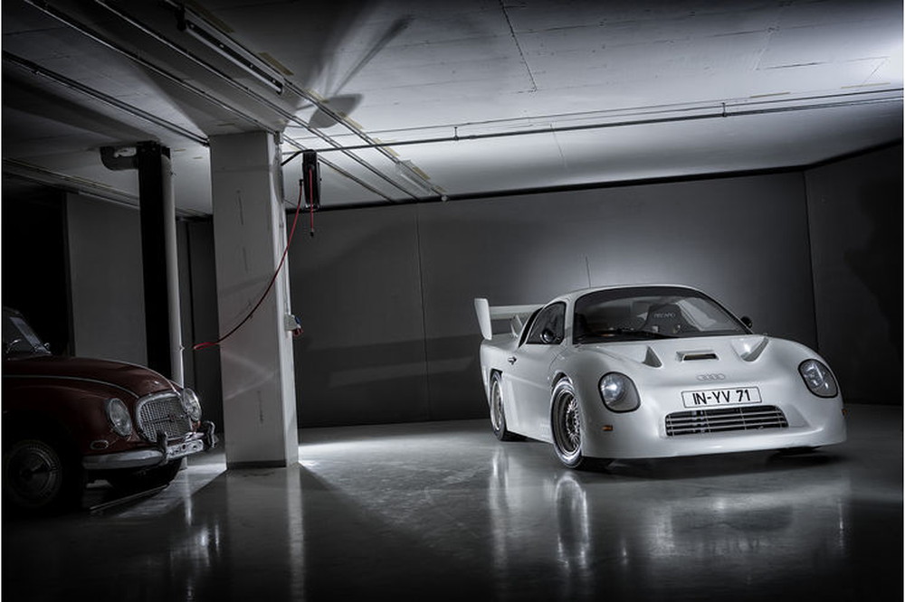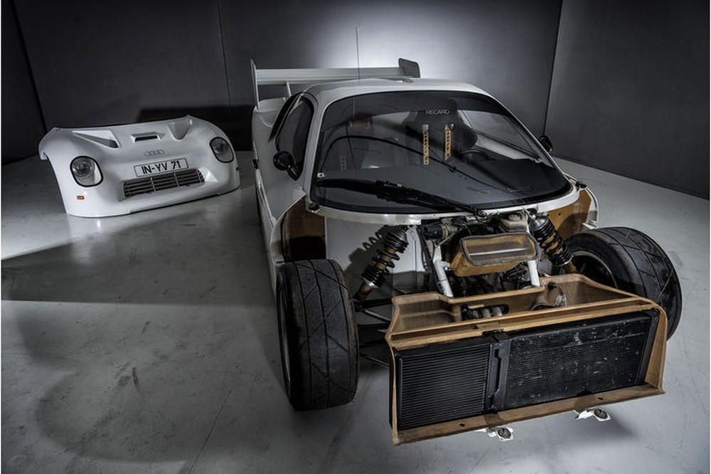 Ο κινητήρας, ο κλασικός αγωνιστικός 5-κύλινδρος της Audi εκείνης της εποχής, βρισκόταν στο κέντρο του αυτοκινήτου που ζύγιζε μόλις 1.000 κιλά χάρη στο πλαίσιο- χωροδικτύωμα και το αμάξωμα από συνθετικά υλικά. Απέδιδε με χαμηλή πίεση στο turbo 320 ίππους, αλλά οι αλλαγές στους κανονισμούς, που προέβλεπαν μικρότερους κινητήρες και μέχρι 300 άλογα, οδήγησαν ολόκληρο το πρότζεκτ να μπει στο χρονοντούλαπο.