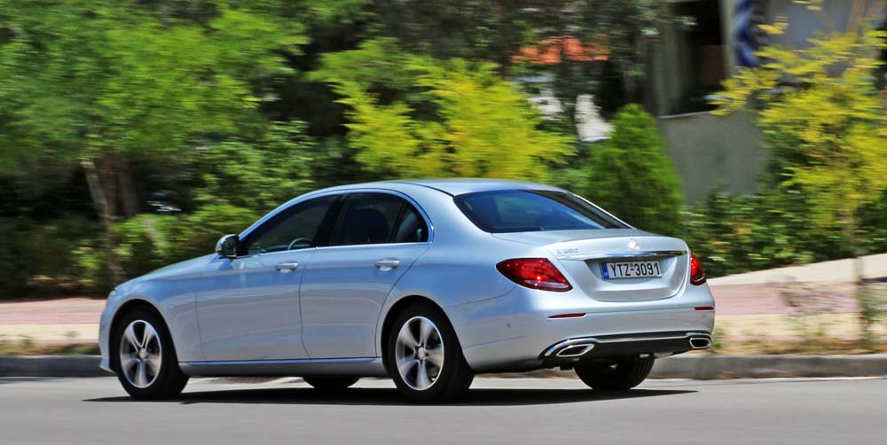 Ακόμη, όμως και με την απλή ανάρτηση το ταξίδι με την E-Class είναι εκπληκτικά ξεκούραστο, πρωτίστως ήσυχο και με κορυφαία ποιότητα κύλισης (άλλωστε ο αεροδυναμικός συντελεστής 0,26 λέει πολλά και από μόνος του). Μάλιστα, η αρχοντική της κύλισης σε χαλαρώνει σε μεγάλο βαθμό και σε κάνει να νιώθεις πως βρίσκεσαι σε ένα μικρότερο αυτοκίνητο, ενώ η μεταβλητή ακρίβεια του τιμονιού (ανάλογα με την ταχύτητα) και η αποτελεσματικότητα των φρένων είναι υπεράνω κριτικής. Στην E-Class τα πάντα φαίνεται να έχουν επικεντρωθεί γύρω από την άνεση των επιβατών, οπότε μην περιμένετε κάτι πιο σπορ από ένα αυτοκίνητο με καθαρό στιλ λιμουζίνας. Ποιος όμως θα αγόραζε ένα τέτοιο αυτοκίνητο για να στρίβει στο όριο;
