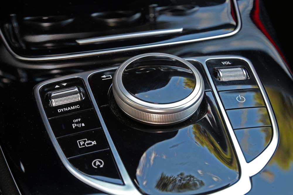 Οι δεσμοί με την μικρότερη C-Class αποτυπώνονται και εντός αφού το ταμπλό δείχνει αρχικά πανομοιότυπο. Ωστόσο, υπάρχουν κάποια στοιχεία που το διαφοροποιούν, όπως η μεγαλύτερη οθόνη που είναι ενσωματωμένη στο ταμπλό και παρόλο που δεν είναι αφής, δεν ισχύει το ίδιο με τα κουμπιά αφής στο τιμόνι. Ωστόσο, προσωπικά δεν με βόλεψαν αφού πολλές φορές «έπαιρναν» λάθος εντολή και για αυτό θα προτιμούσα τους κλασικούς πατητούς διακόπτες. Επίσης, στην κονσόλα υπάρχει μία μεγάλη θήκη, η οποία όμως δεν είχε την κατάλληλη διαρρύθμιση για να συγκρατήσει δύο ποτήρια.